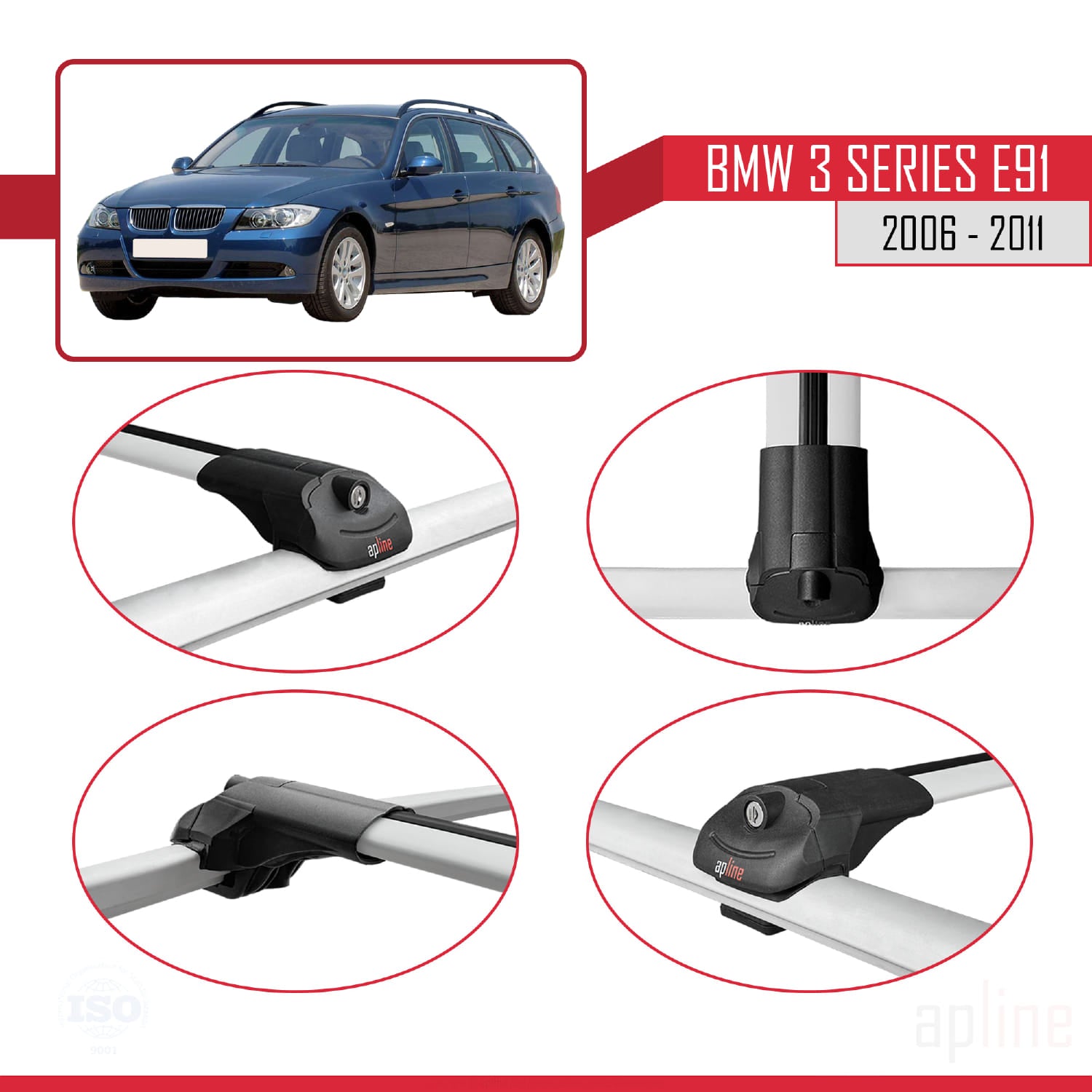 Kompatibel mit BMW 3er E91 Touring 2006-2011 ACE-1 Dachgepäckträger, graues Aluminium, 3-teilig