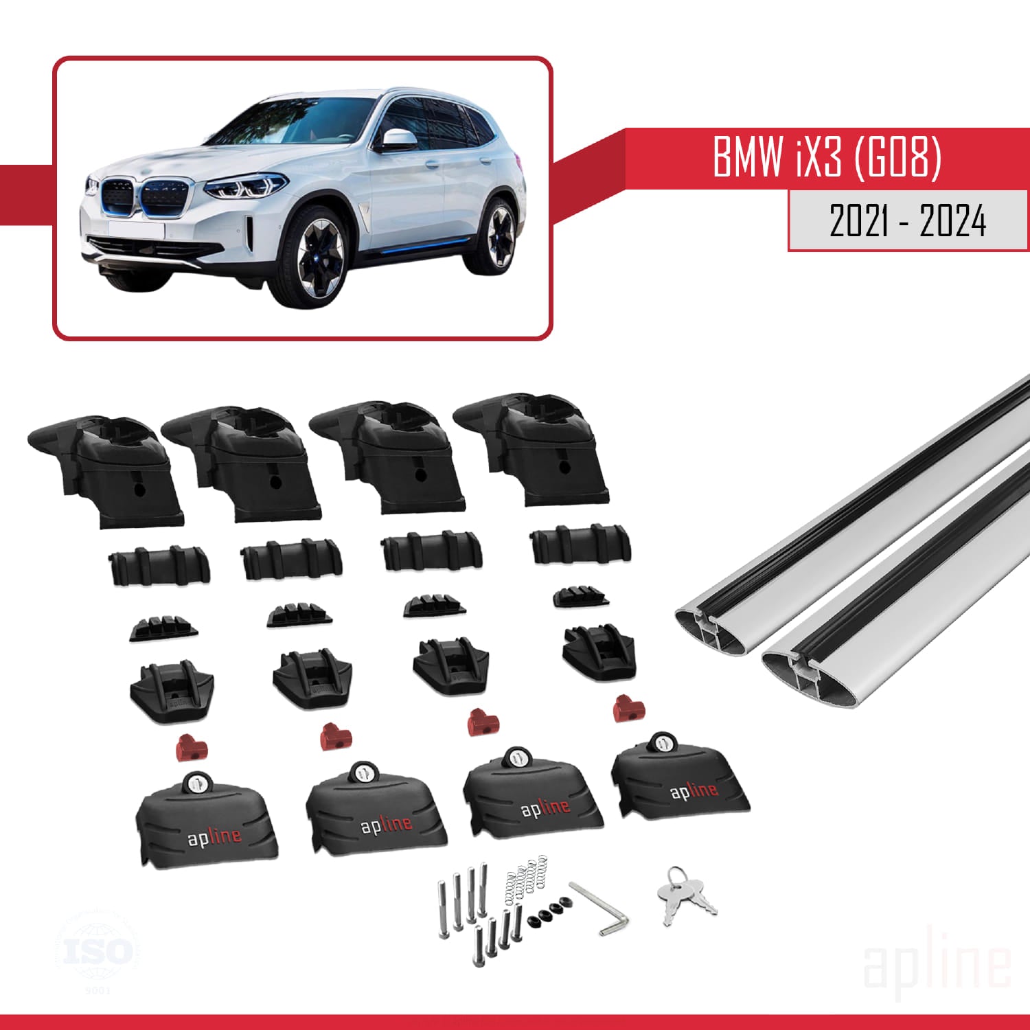 Kompatibel mit BMW iX3 G08 2021-2024 ACE-2 Dachgepäckträger, Reling, Gepäckträger, graues Aluminium, 2 Stangen