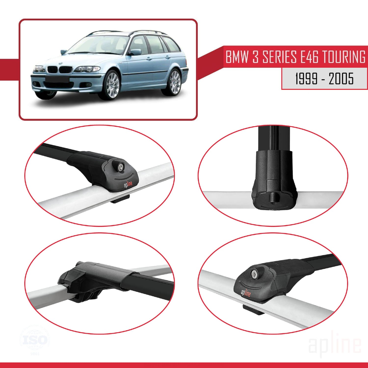 Kompatibel mit BMW 3er (E46) Touring 1999-2005 ACE-1 Dachträger Auto-Reling Gepäckträger Schwarzes Aluminium 3 Stangen