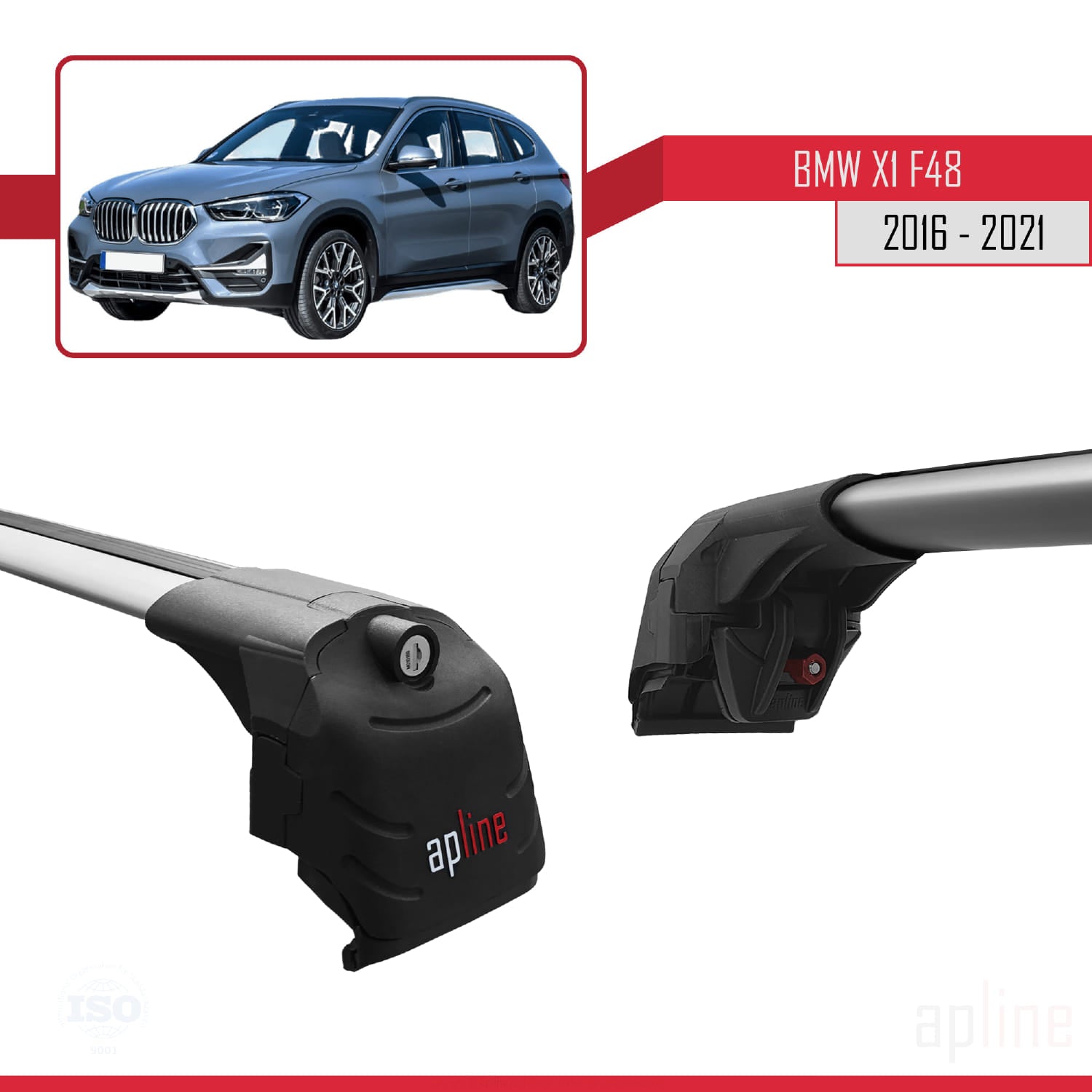 Kompatibel mit BMW X1 (F48) 2016-2022 ACE-2 Dachgepäckträger, Reling, Gepäckträger, graues Aluminium, 2 Stangen