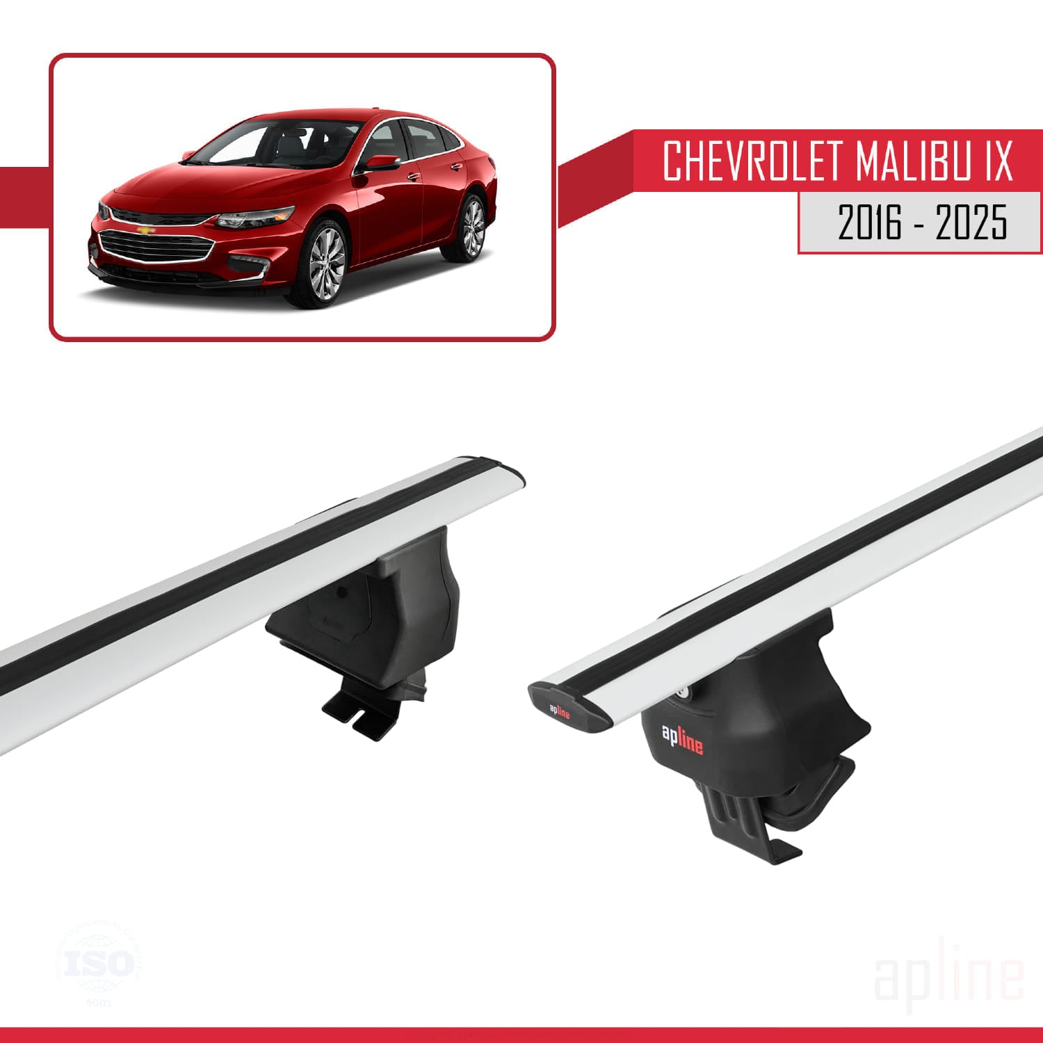 Kompatibel mit Chevrolet Malibu IX 2016-2025 ACE-4 Dachgepäckträger, Reling, Gepäckträger, graues Aluminium, 2 Stangen