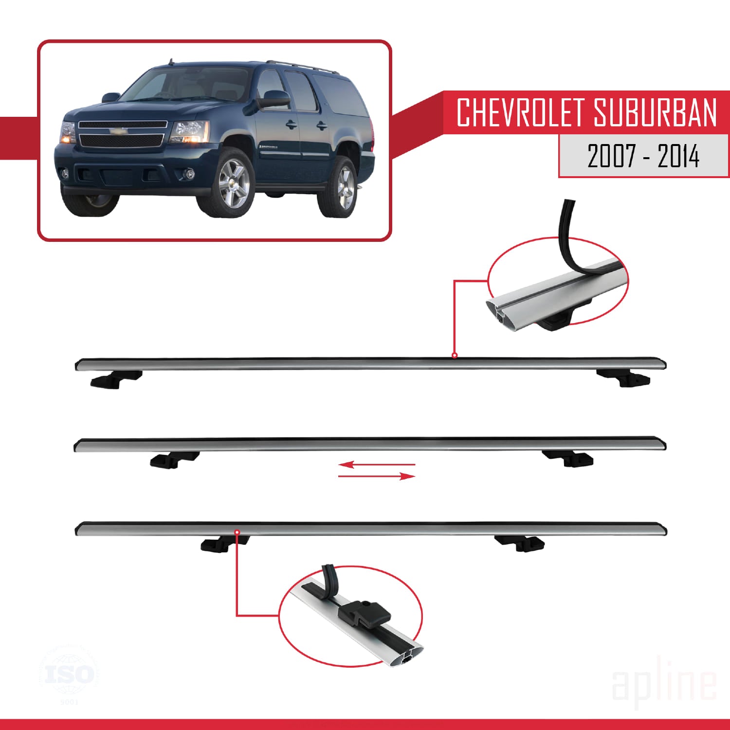 Kompatibel mit Chevrolet Suburban 2007-2014 BASIC Modell Dachreling Gepäckträger Graues Aluminium 4 Stangen
