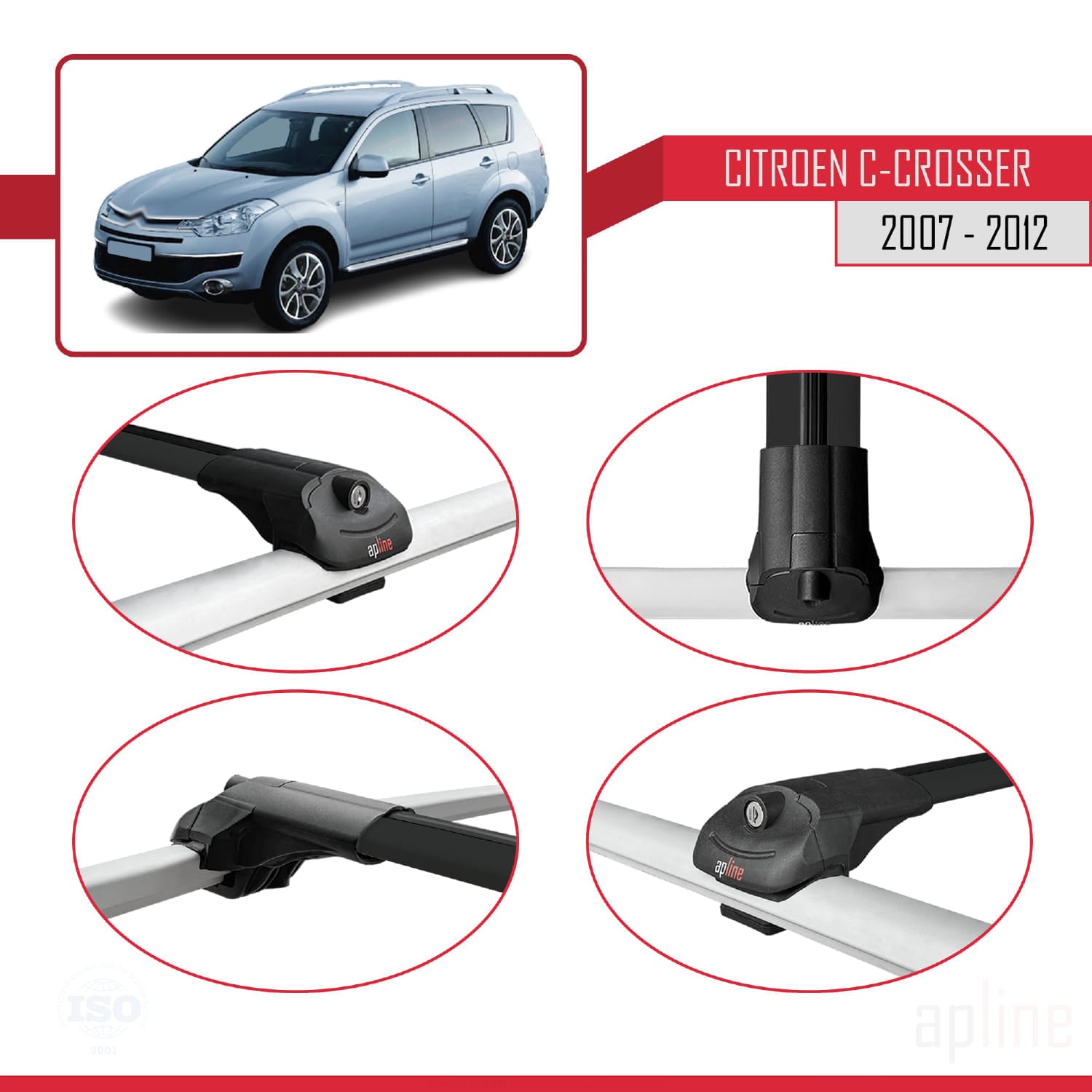 Kompatibel mit Citroen C-Crosser 2007-2012 ACE-1 Dachgepäckträger, Auto-Reling, Gepäckträger, schwarzes Aluminium, 3 Stangen