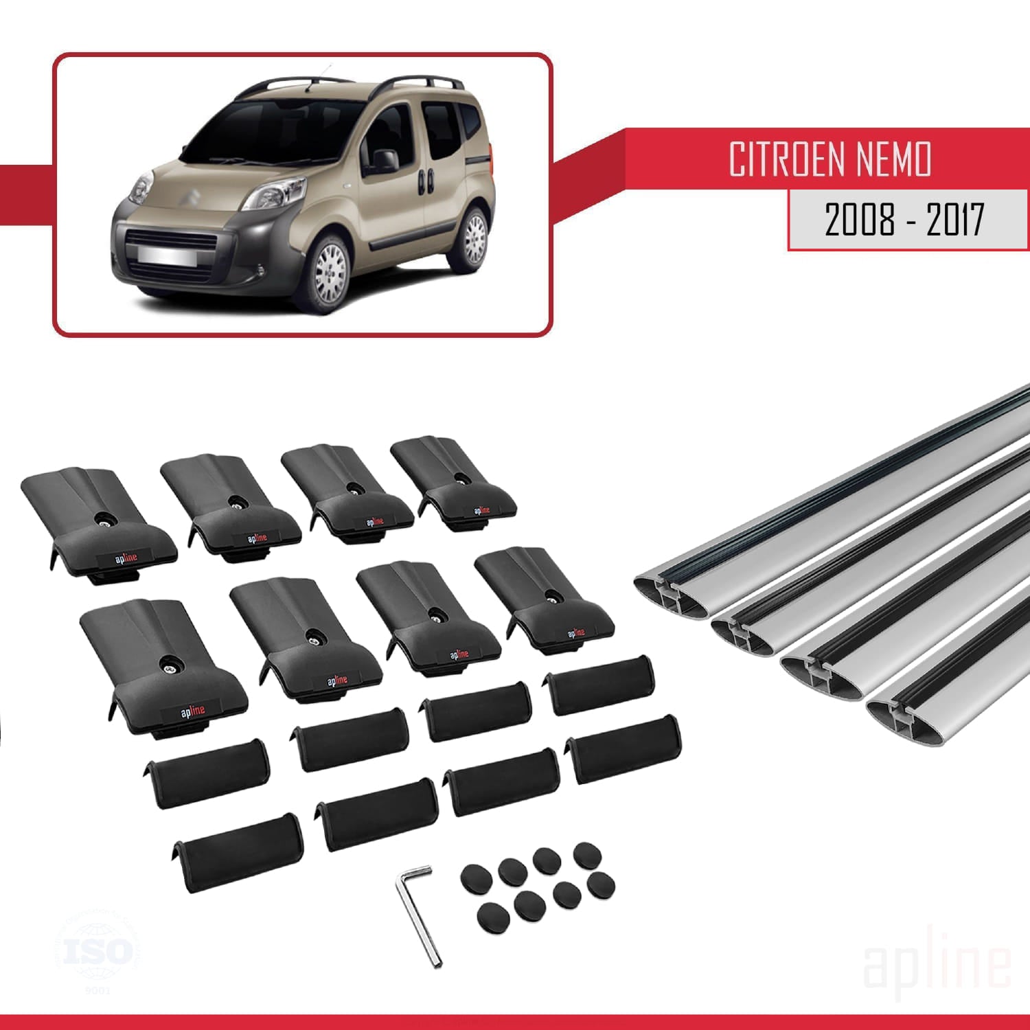 Kompatibel mit Citroen Nemo 3 (225) 2008-2017 FLY Modell Dachgepäckträger, graues Aluminium, 4 Stangen