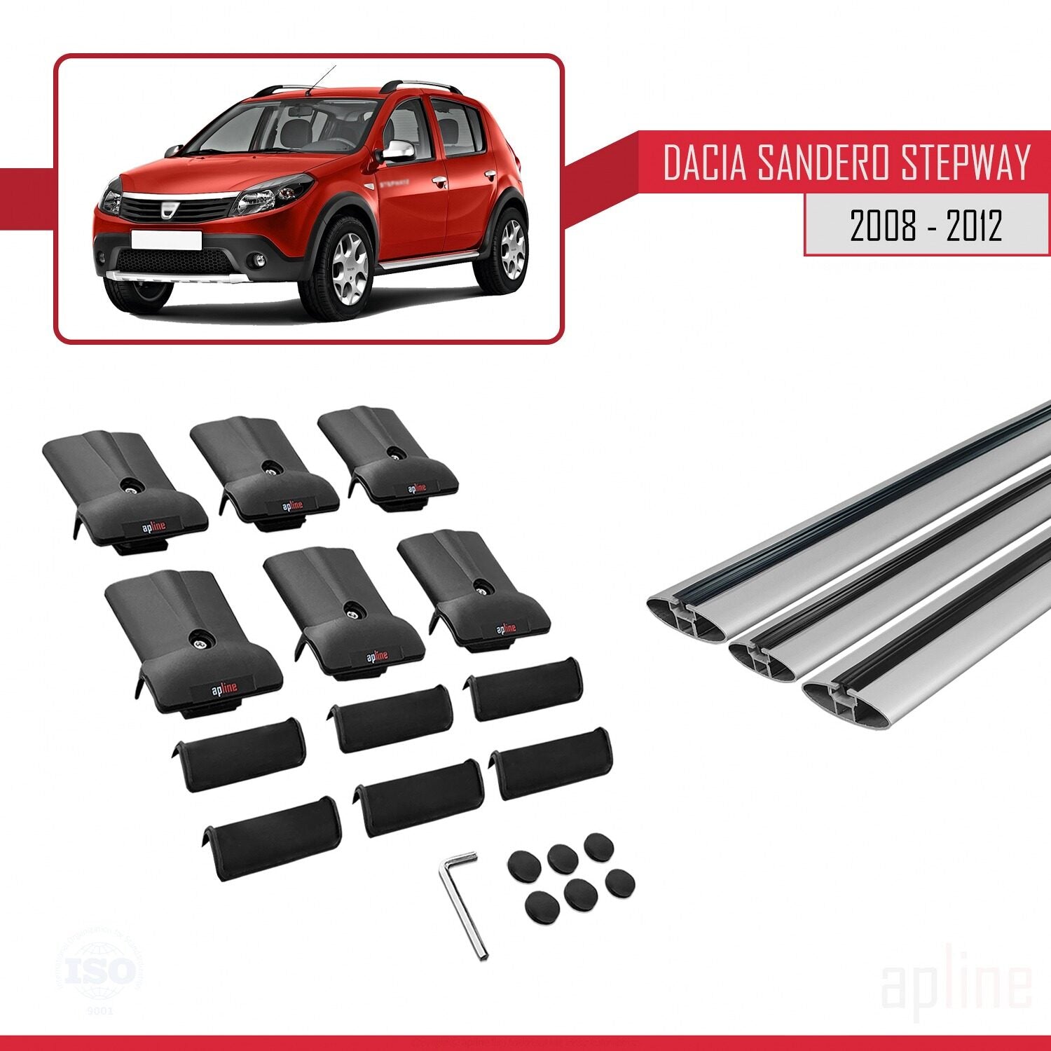Kompatibel mit Dacia Sandero Stepway 2008-2012 FLY Modell Dachgepäckträger, graues Aluminium, 3 Stangen