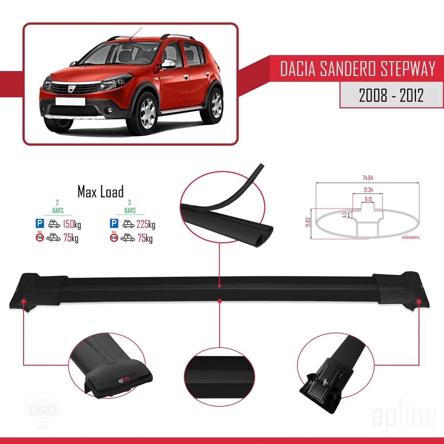 Kompatibel mit Dacia Sandero Stepway 2008-2012 FLY Modell Dachgepäckträger, schwarzes Aluminium, 2 Stangen