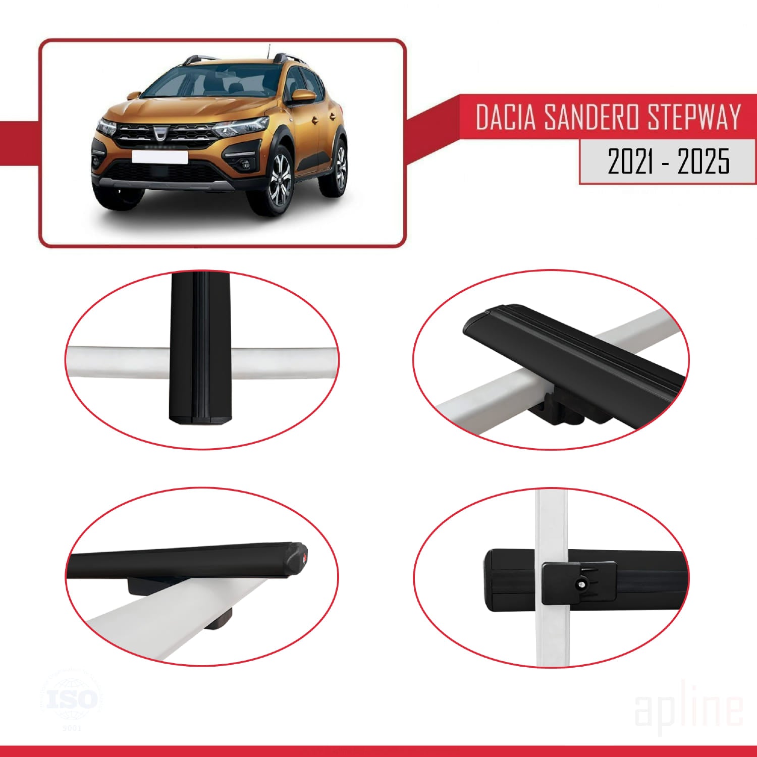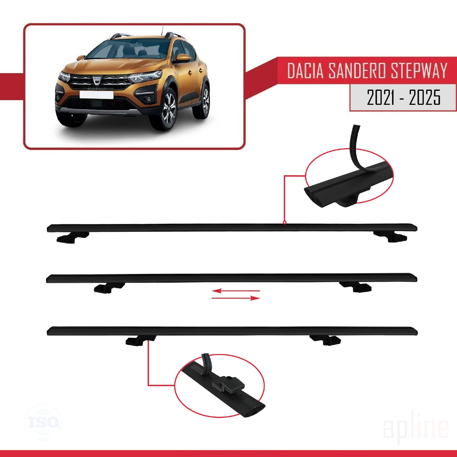 Kompatibel mit Dacia Sandero Stepway 3 2021-2025 Basismodell Dachgepäckträger, Reling, Gepäckträger, schwarzes Aluminium, 2 Stangen