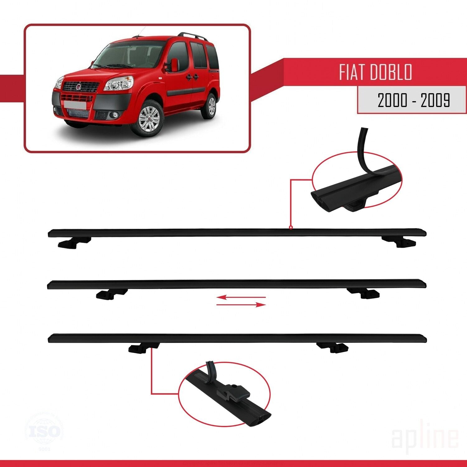 Kompatibel mit Fiat Doblo 2000-2009 Basismodell Dachgepäckträger, schwarzes Aluminium, 3-Stangen