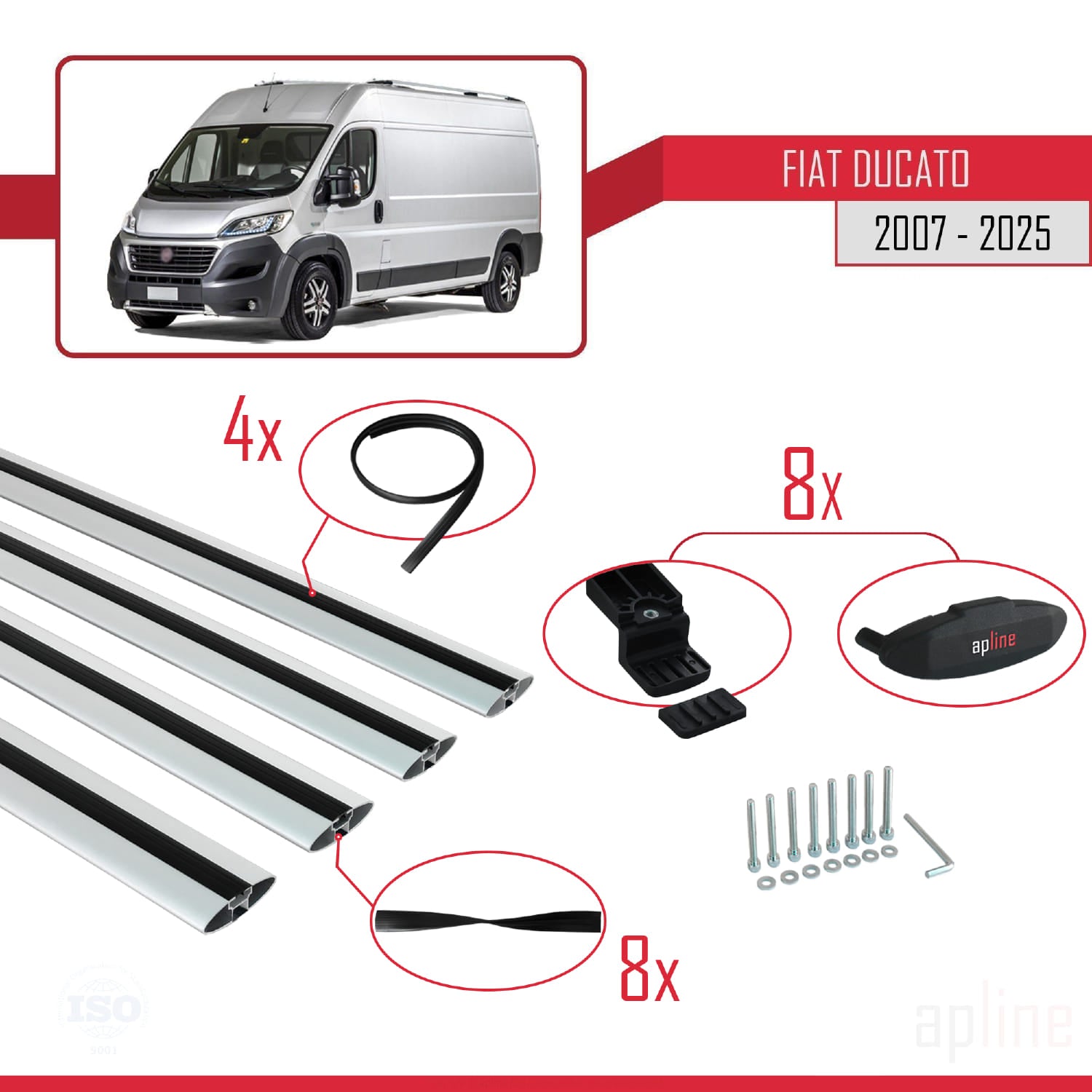 Kompatibel mit Fiat Ducato 3 2007-2025 Basismodell Dachgepäckträger, graues Aluminium, 4 Stangen