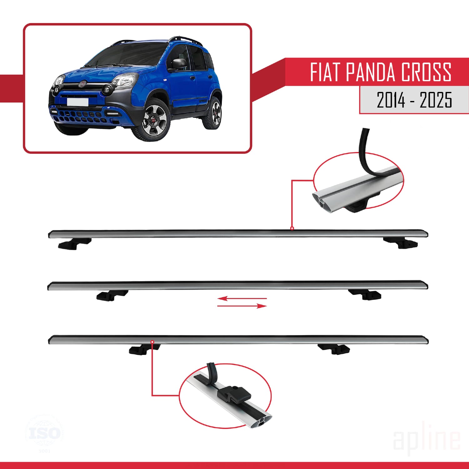 Kompatibel mit Fiat Panda Cross 2014-2025 Basismodell Dachgepäckträger, Reling, Gepäckträger, graues Aluminium, 3 Stangen