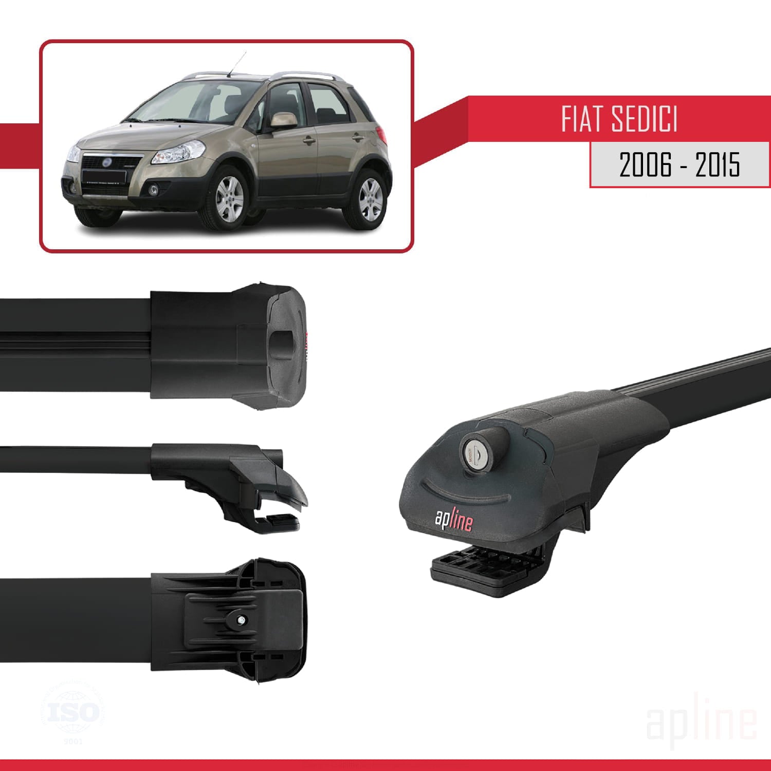Kompatibel mit Fiat Sedici 2006-2015 ACE-1 Dachgepäckträger, Auto-Reling, Gepäckträger, schwarzes Aluminium, 2 Stangen