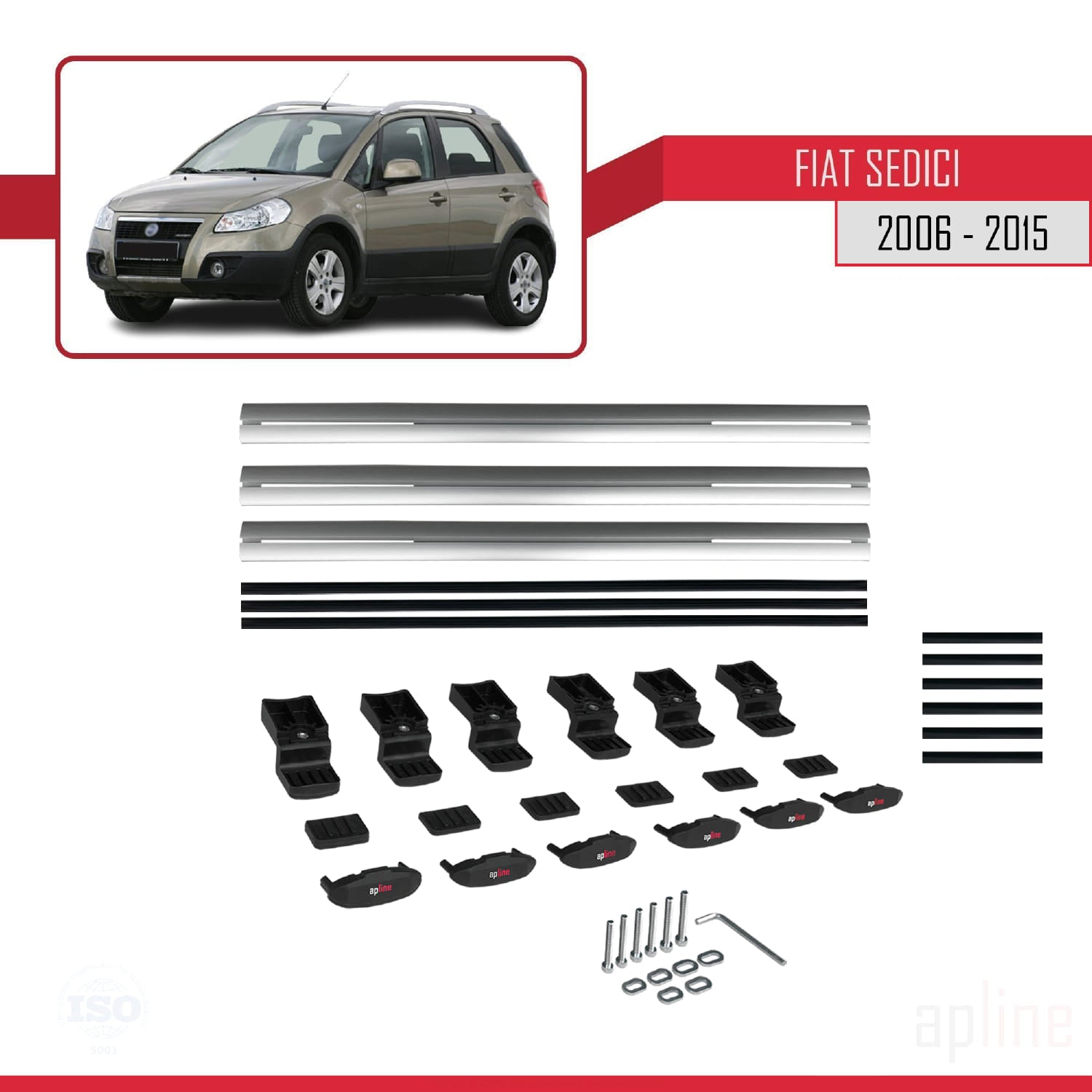 Kompatibel mit Fiat Sedici 2006-2015 Basismodell Dachgepäckträger, graues Aluminium, 3 Stangen