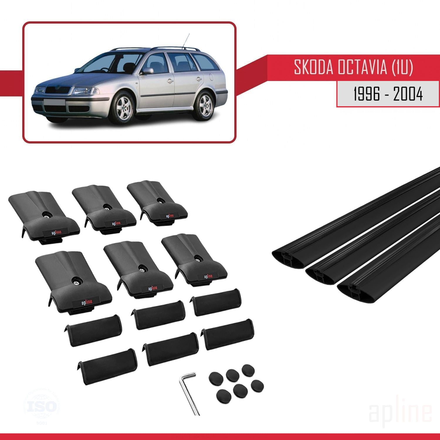 Compatible avec Skoda Octavia (1U) 1996-2004 FLY Model Barres de Toit Railing Porte-Bagages de Voiture Noir Aluminium 3 Barres