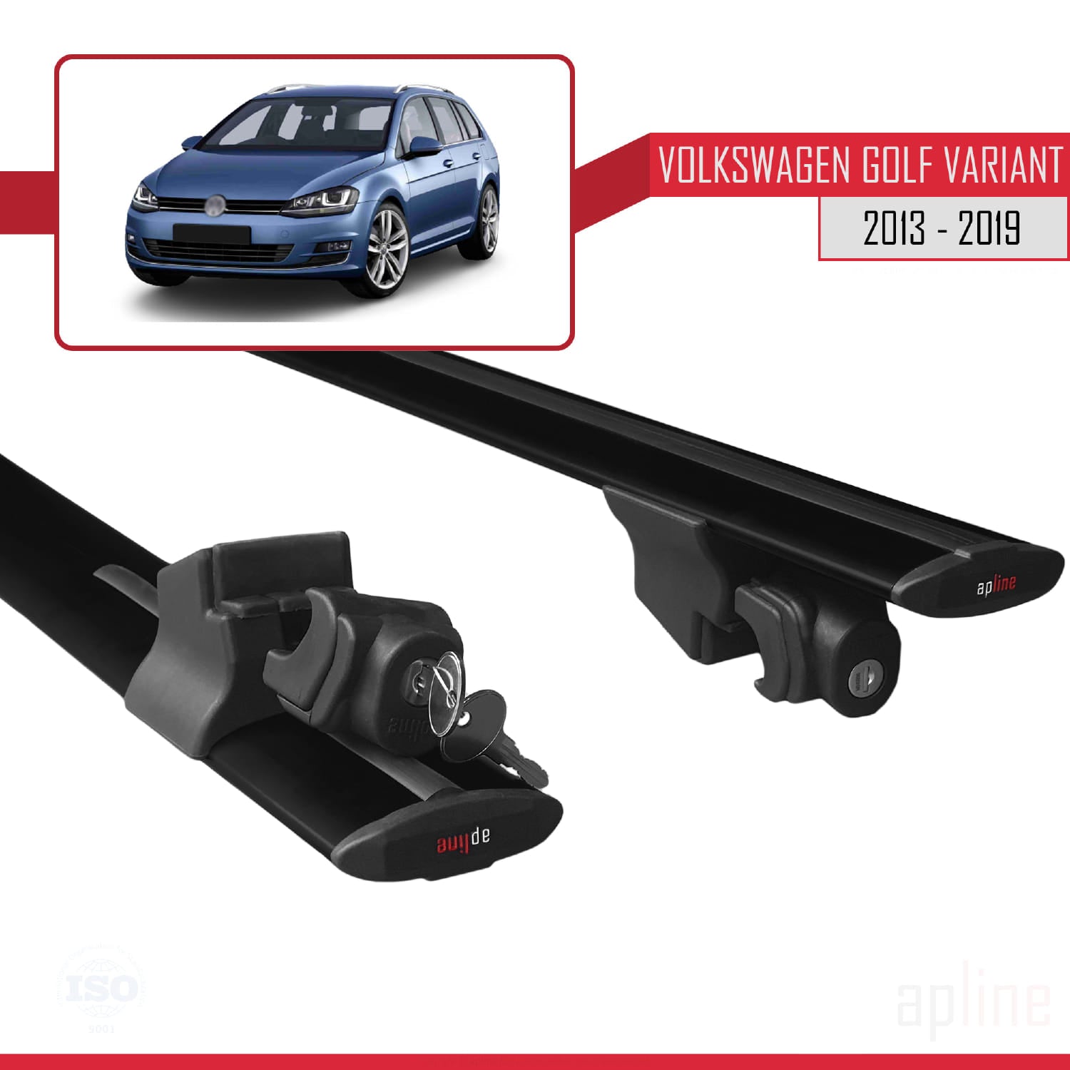 Compatible avec Volkswagen Golf 7 (5G) Variant 2013-2019 HOOK Model Barres de Toit Railing Porte-Bagages de Voiture Noir Aluminium 2 Barres