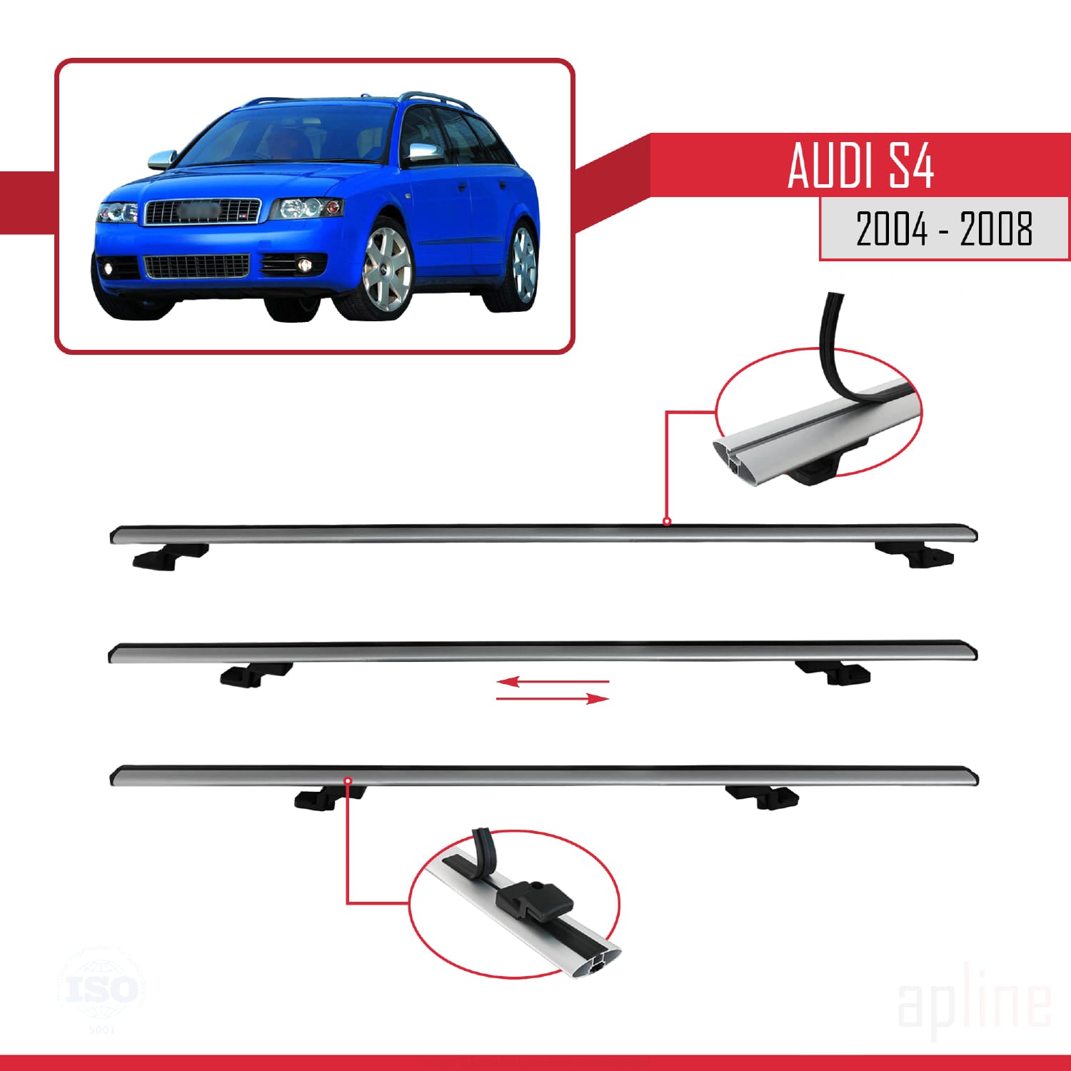 Compatible avec Audi S4 2004-2008 BASIC Model Barres de Toit Railing Porte-Bagages de Voiture Gris Aluminium 2 Barres