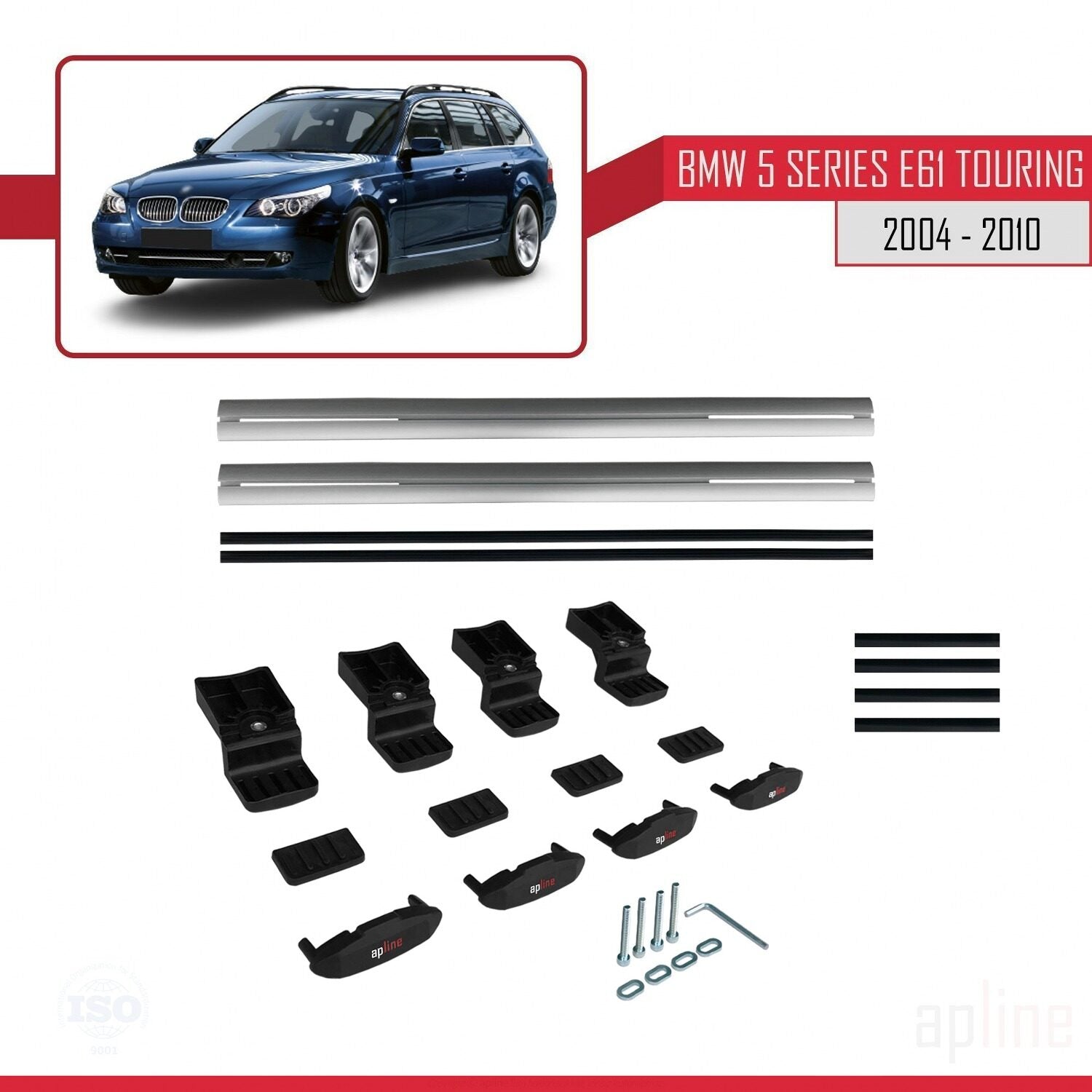 Compatible avec BMW Série 5 (E61) Touring 2004-2010 BASIC Model Barres de Toit Railing Porte-Bagages de Voiture Gris Aluminium 2 Barres