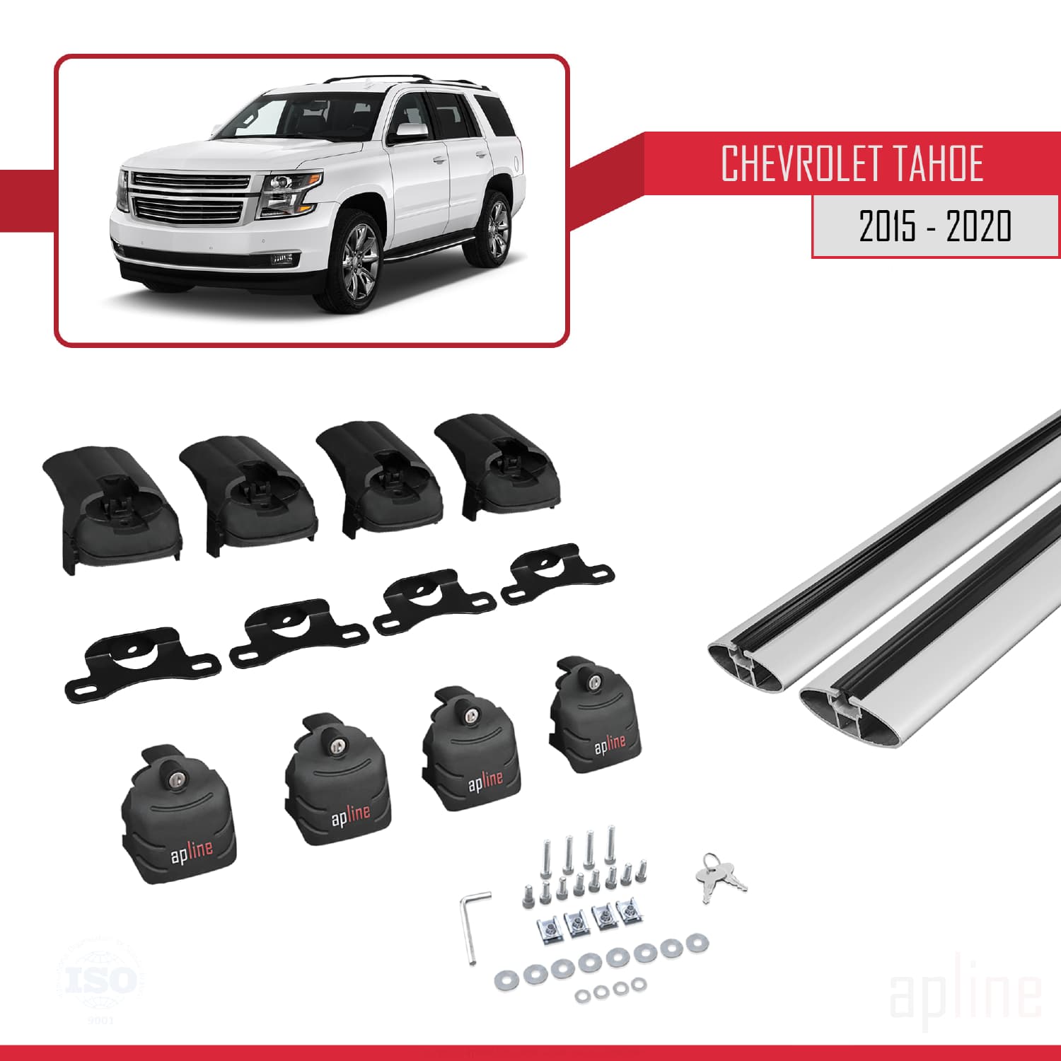 Compatible with Chevrolet Tahoe 4 2015-2020 ACE-2 Car Roof Rack Cross Bar Grey Aluminium 2 Bars