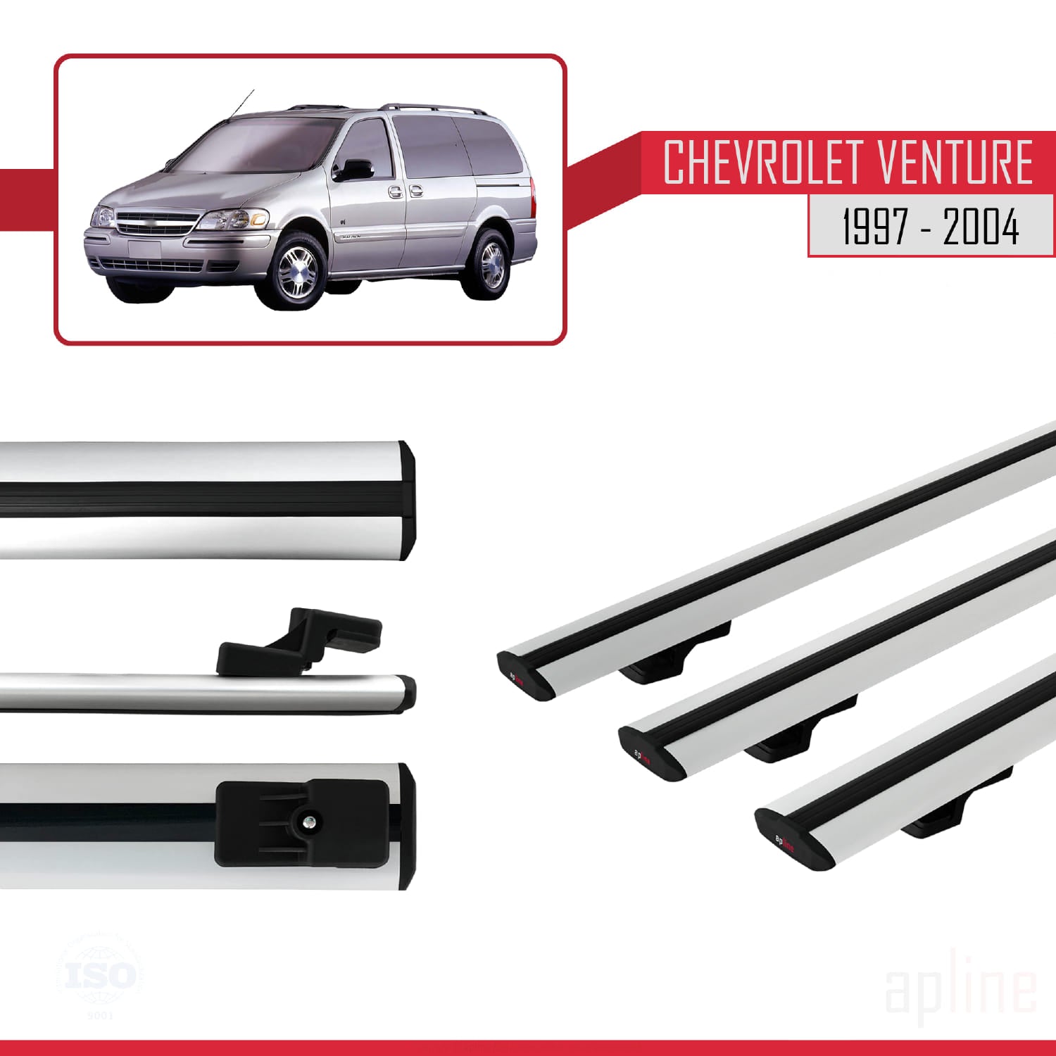 Compatible with Chevrolet Venture 1997-2004 BASIC Model Car Roof Rack Cross Bar Grey Aluminium 3 Bars
