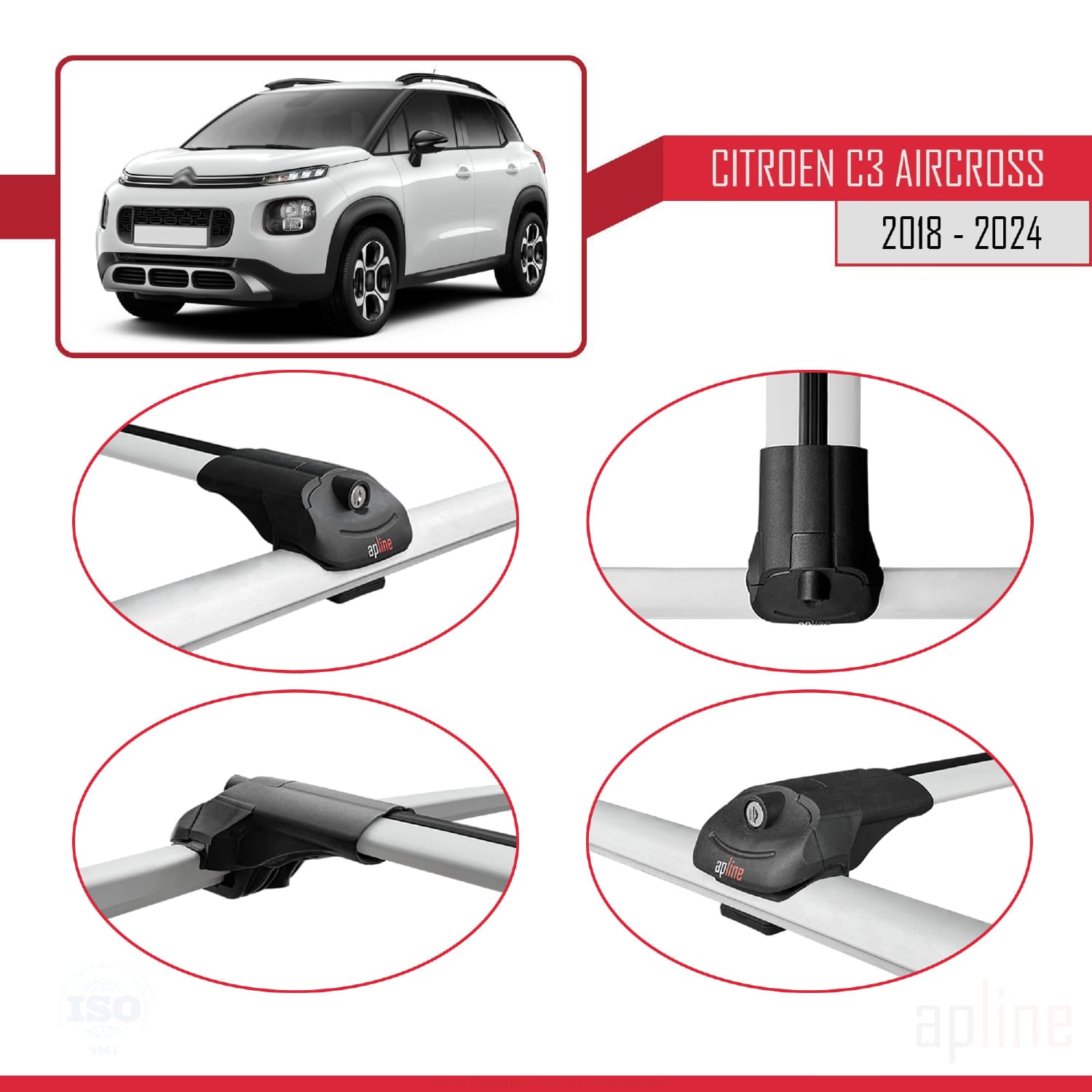 Kompatibel mit Citroen C3 Aircross (A88) 2018-2024 ACE-1 Dachgepäckträger, Reling, Gepäckträger, graues Aluminium, 2 Stangen