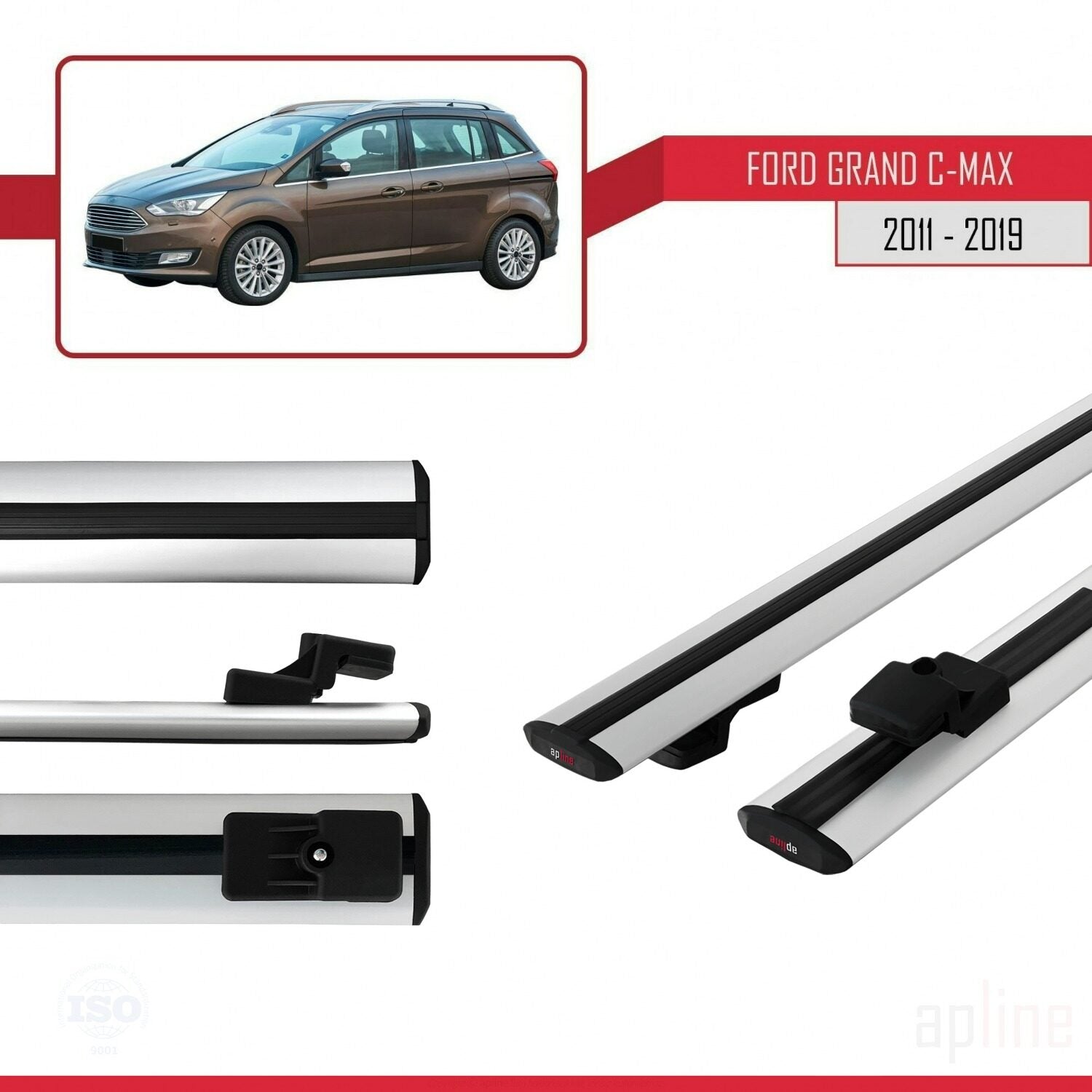 Compatible with Ford Grand C-Max (C344) 2011-2019 BASIC Model Car Roof Rack Cross Bar Grey Aluminium 2 Bars