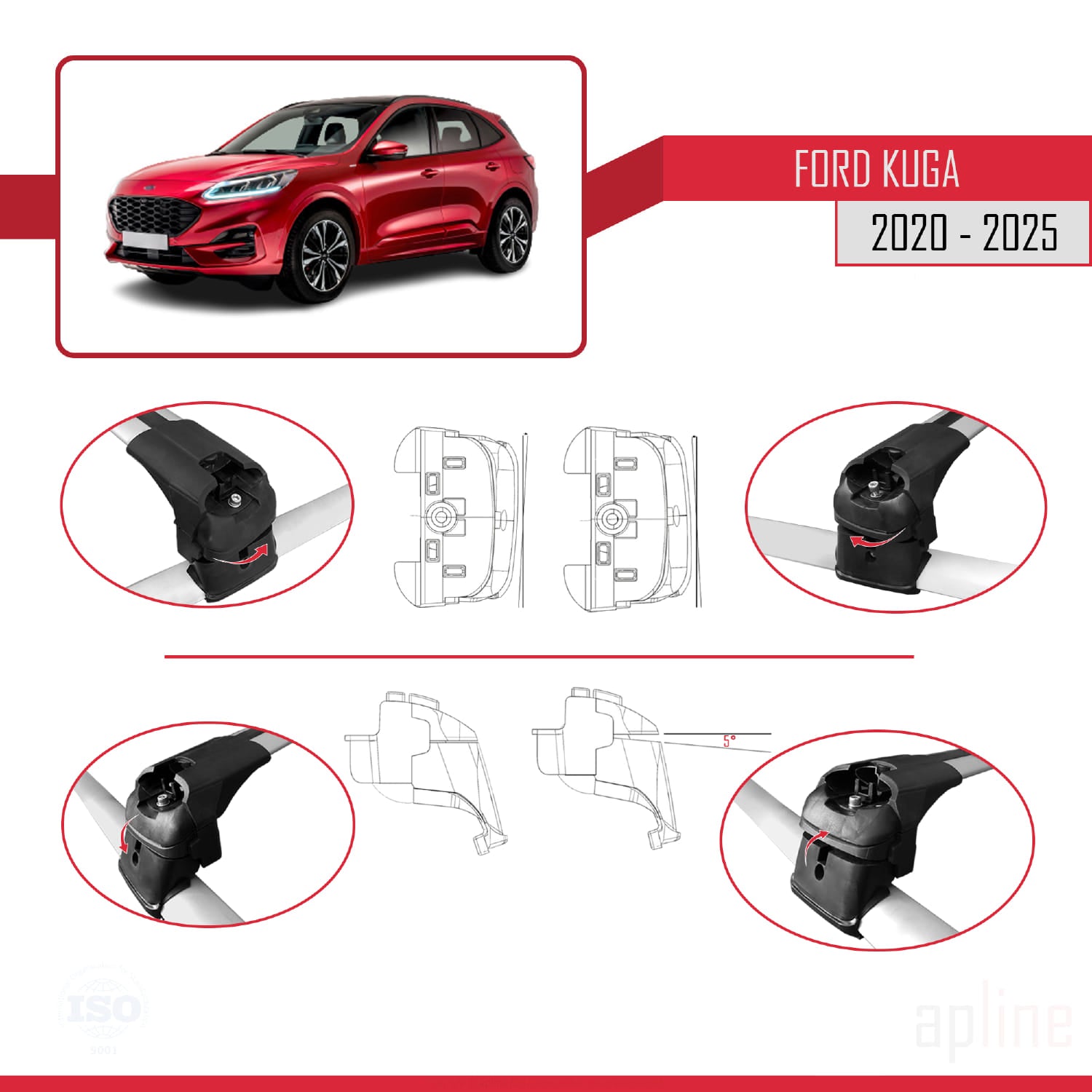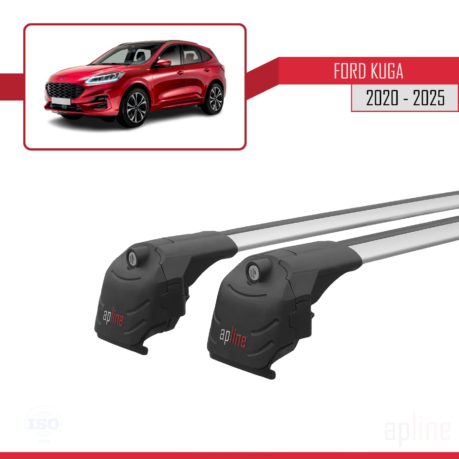 Compatible with Ford Kuga 3 (CX482) 2020-2025 ACE-2 Car Roof Rack Cross Bar Grey Aluminium 2 Bars