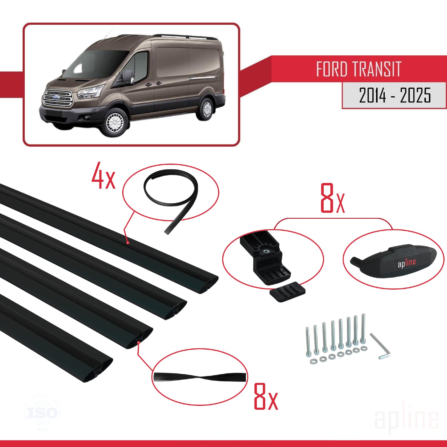 Compatible with Ford Transit 2014-2025 BASIC Model Car Roof Rack Cross Bar Black Aluminium 4 Bars