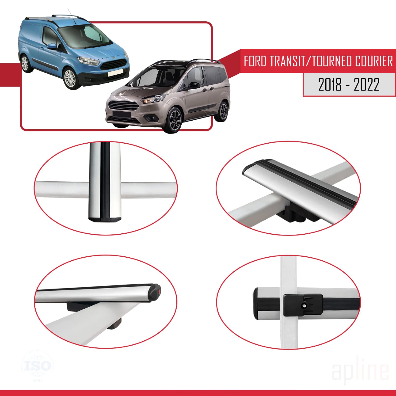 Compatible with Ford Transit/Tourneo Courier Post-Facelift 2018-2022 BASIC Model Car Roof Rack Cross Bar Grey Aluminium 2 Bars