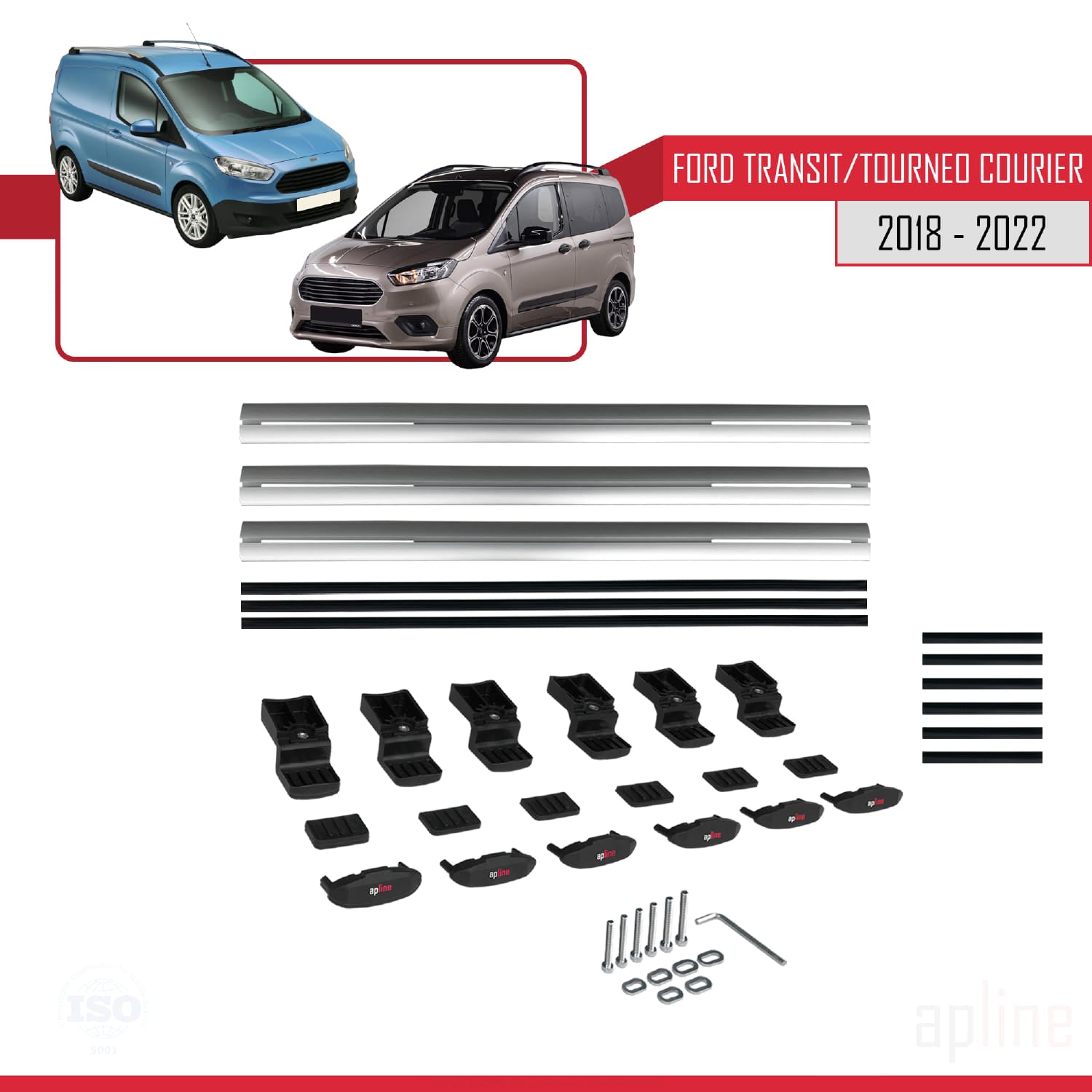 Package Contents 3 pieces of aluminium bar (fully compatible with the vehicle in the title of the listing) 6 pieces of aluminium bar connection kit. 6 Pieces Profile Cover, 6 Pieces Bottom Bracket, 6 Pieces Elastomer Bottom Bracket Protector, 6 Pieces Bolt (+ or ⬡) 6 Pieces Nut 1 Piece Allen Key (if the bolt is ⬡ head)