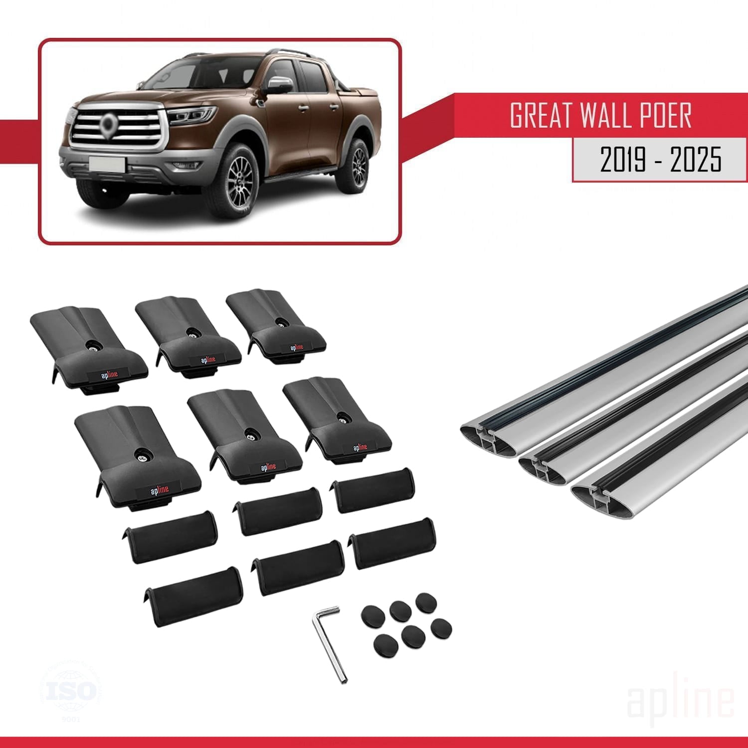 Kompatibel mit Great Wall Pioneer Fly Modellen (2019-2025), Dachträger, Autodachträger, graues Aluminium, 3-Stangen