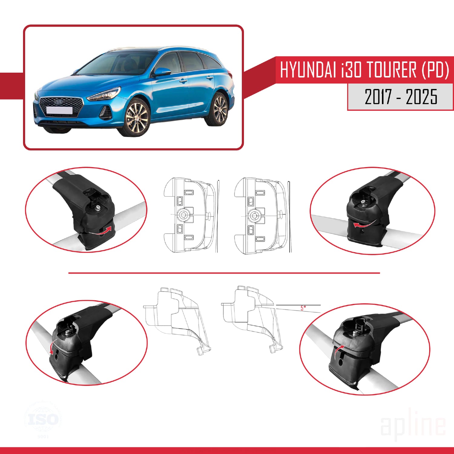 Compatible with Hyundai i30 3 (PD) Tourer 2017-2025 ACE-2 Car Roof Rack Cross Bar Grey Aluminium 2 Bars