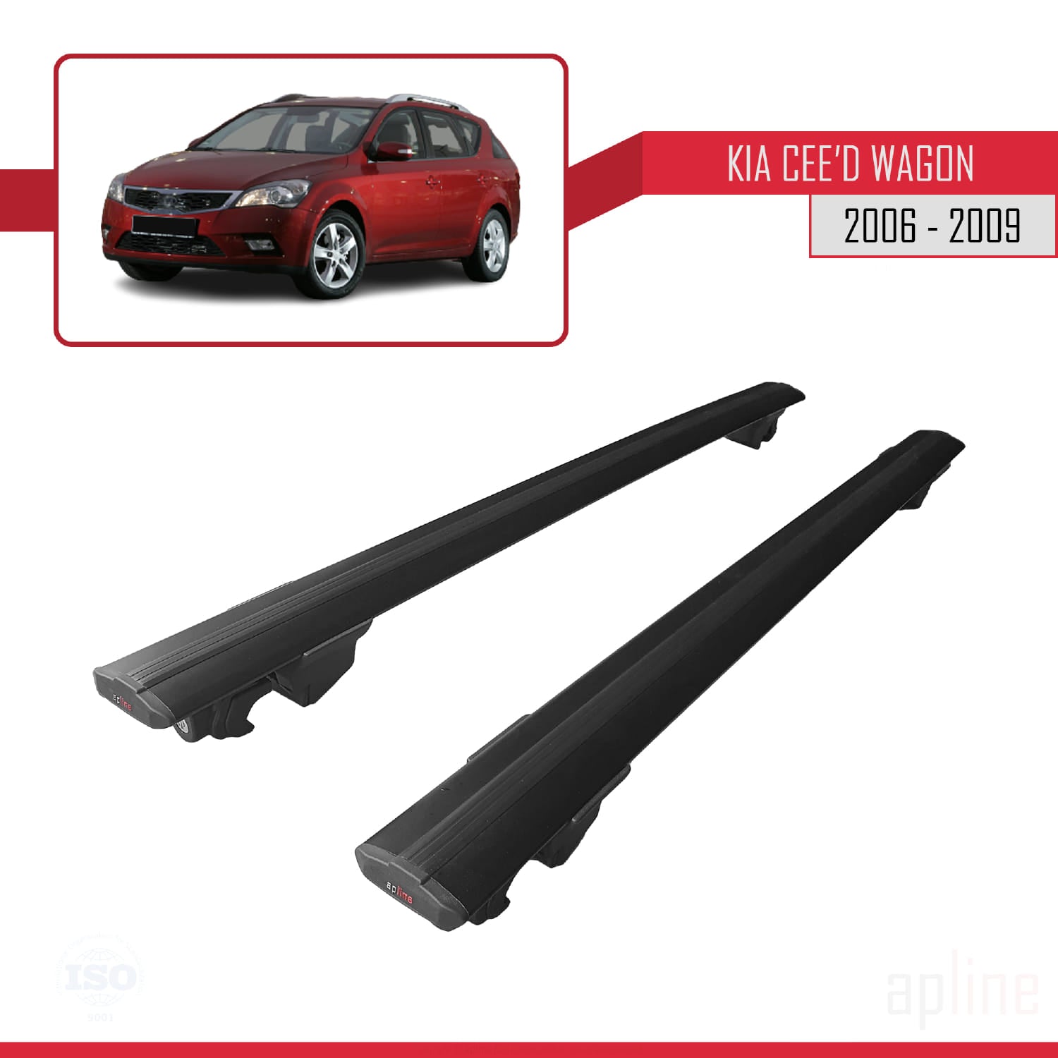 Compatible avec Kia Ceed (ED) Break Pre-Facelift 2006-2009 HOOK Model Barres de Toit Railing Porte-Bagages de Voiture Noir Aluminium 2 Barres