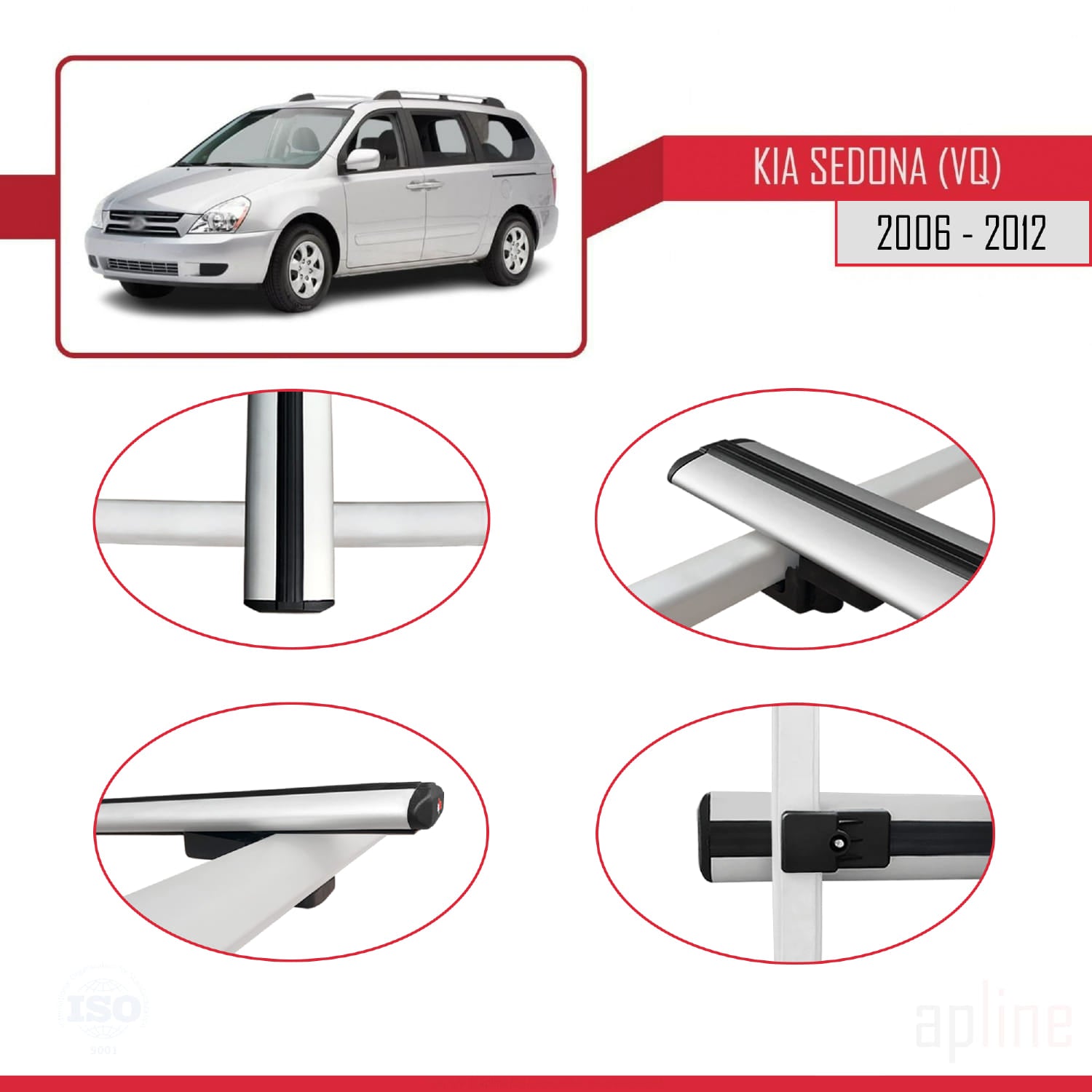 Compatible with Kia Sedona 2 (VQ) 2006-2012 BASIC Model Car Roof Rack Cross Bar Grey Aluminium 3 Bars
