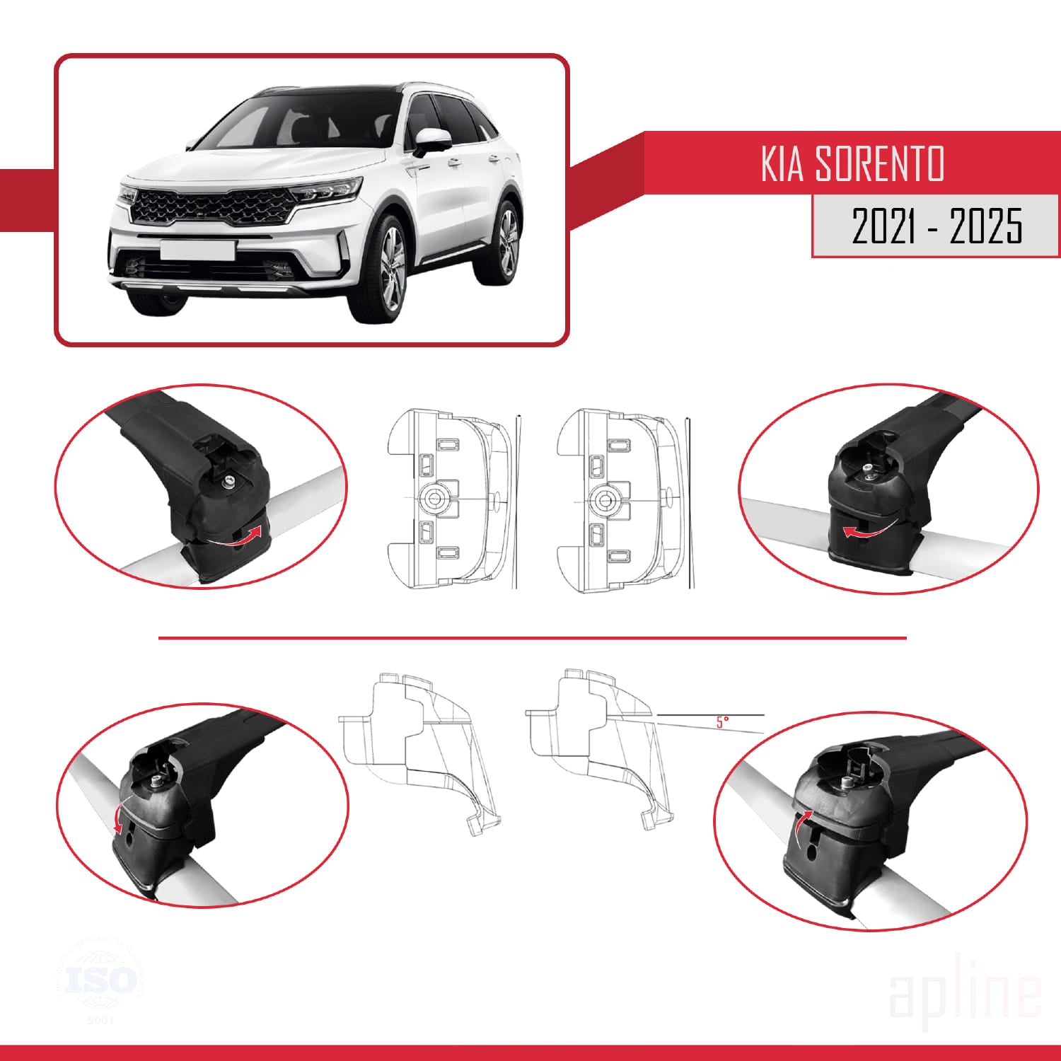Compatible with Kia Sorento 4 (MQ4) 2021-2025 ACE-2 Car Roof Rack Cross Bar Black Aluminium 2 Bars