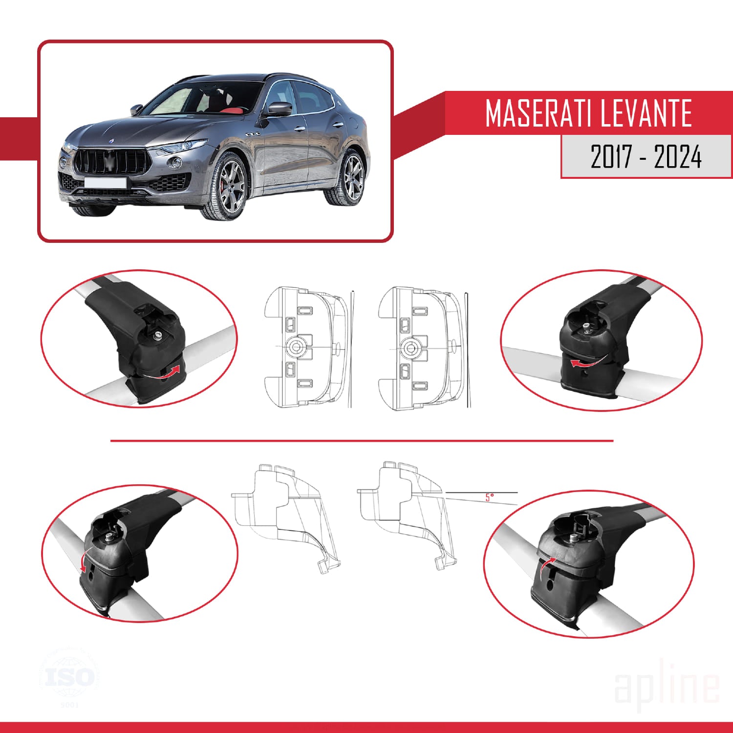 Compatible avec Maserati Levante 2017-2024 ACE-2 Barres de Toit Railing Porte-Bagages de Voiture Gris Aluminium 2 Barres