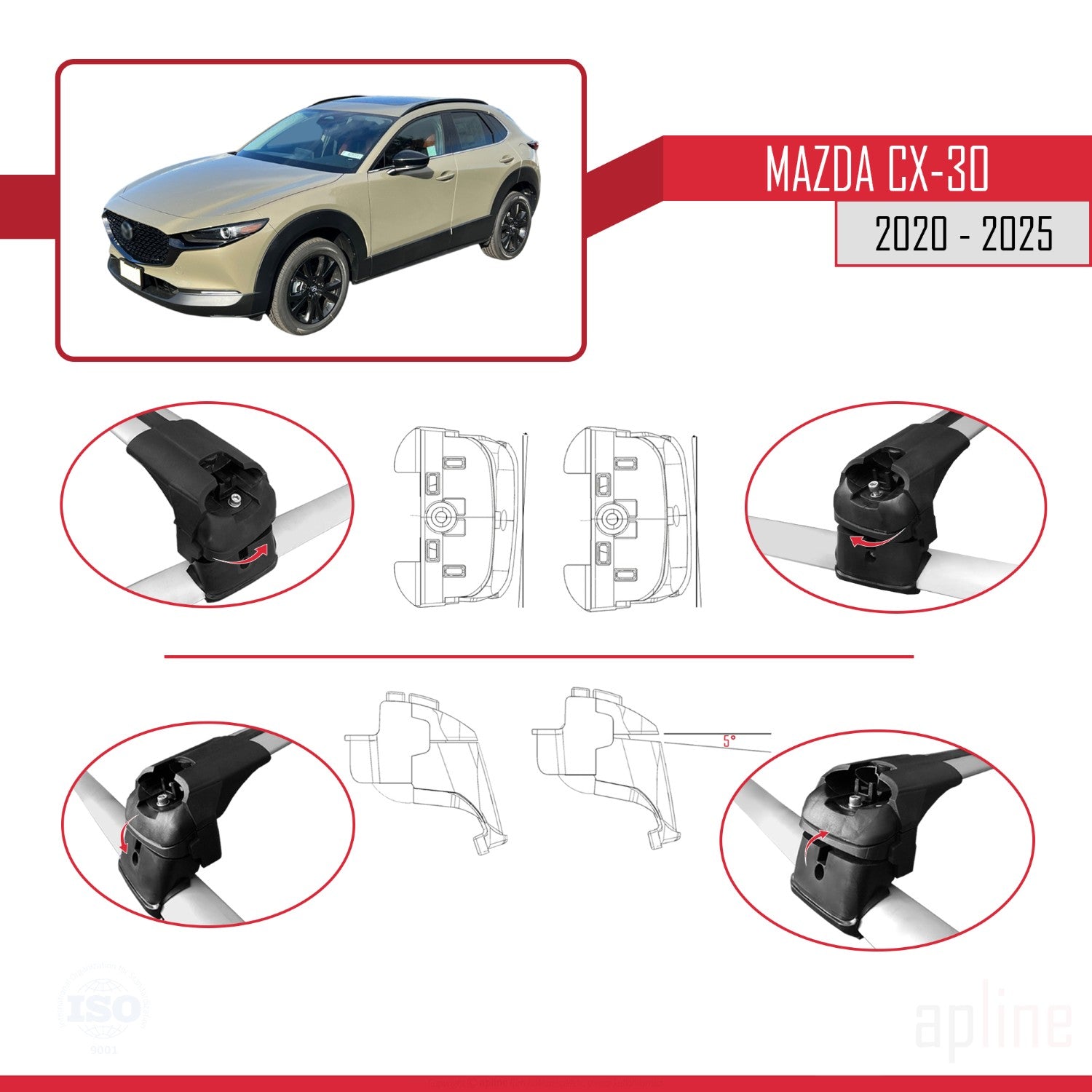 Compatible avec Mazda CX-30 2020-2025 ACE-2 Barres de Toit Railing Porte-Bagages de Voiture Gris Aluminium 2 Barres