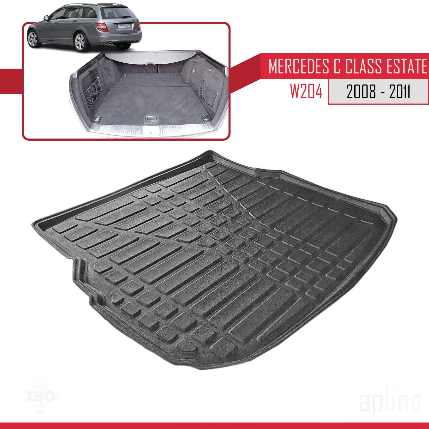 Compatible with Mercedes C Class 3 (S204) Pre-Facelift 2008-2011 Flexible Trunk Mats Cargo Liner Black