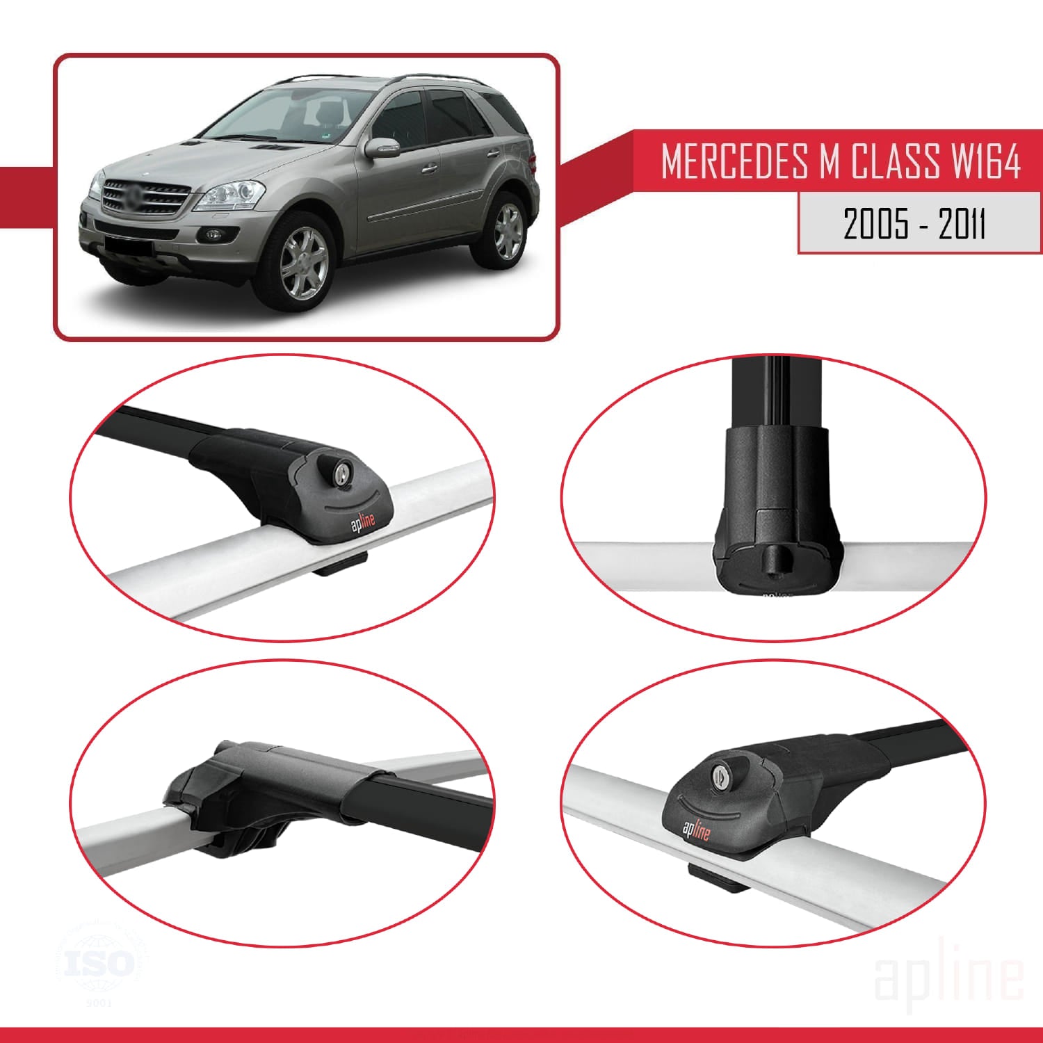 Compatible with Mercedes M Class 2 (W164) 2005-2011 ACE-1 Car Roof Rack Cross Bar Black Aluminium 3 Bars