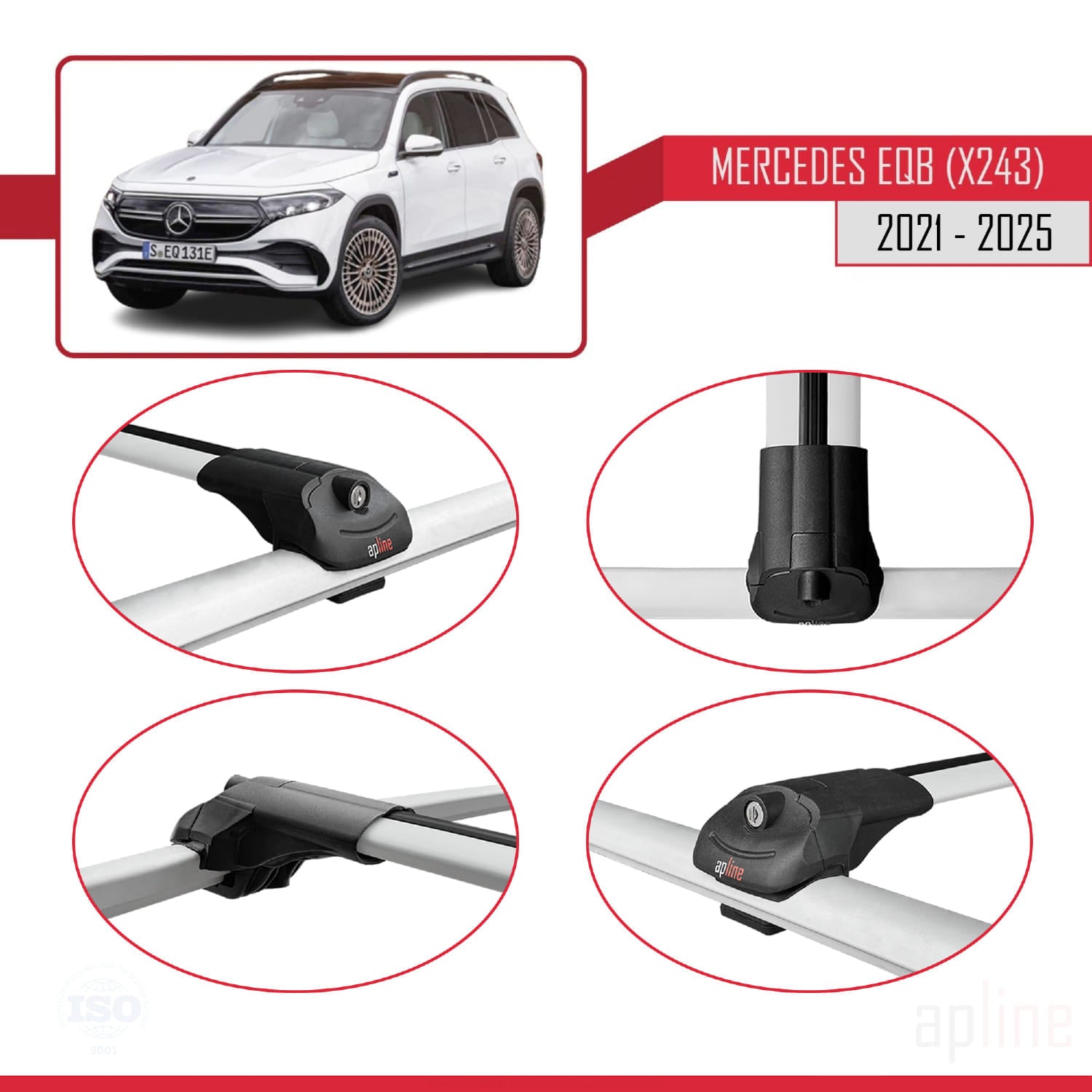 Compatible avec Mercedes EQB (X243) 2021-2025 ACE-1 Barres de Toit Railing Porte-Bagages de Voiture Gris Aluminium 3 Barres