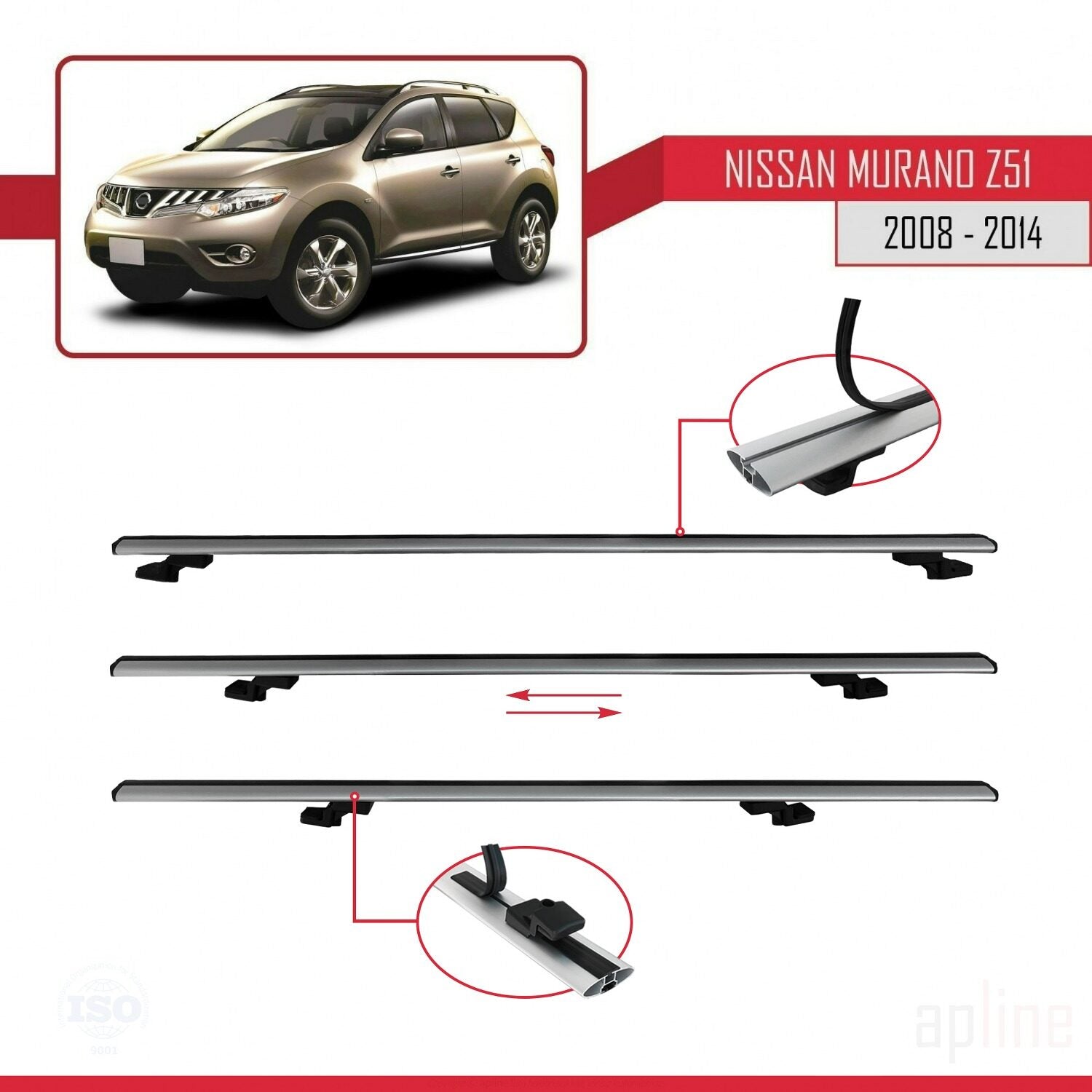 Compatible avec Nissan Murano 2 (Z51) 2008-2014 BASIC Model Barres de Toit Railing Porte-Bagages de Voiture Gris Aluminium 3 Barres