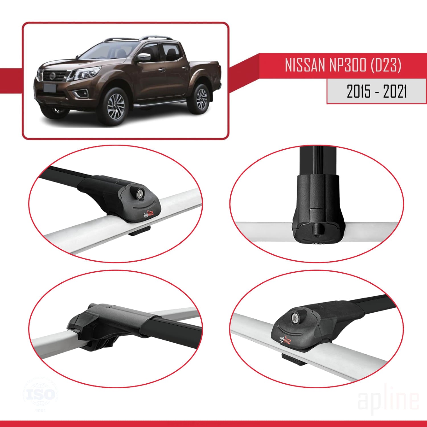 Compatible with Nissan NP300 (D23) 2015-2021 ACE-1 Car Roof Rack Cross Bar Black Aluminium 3 Bars