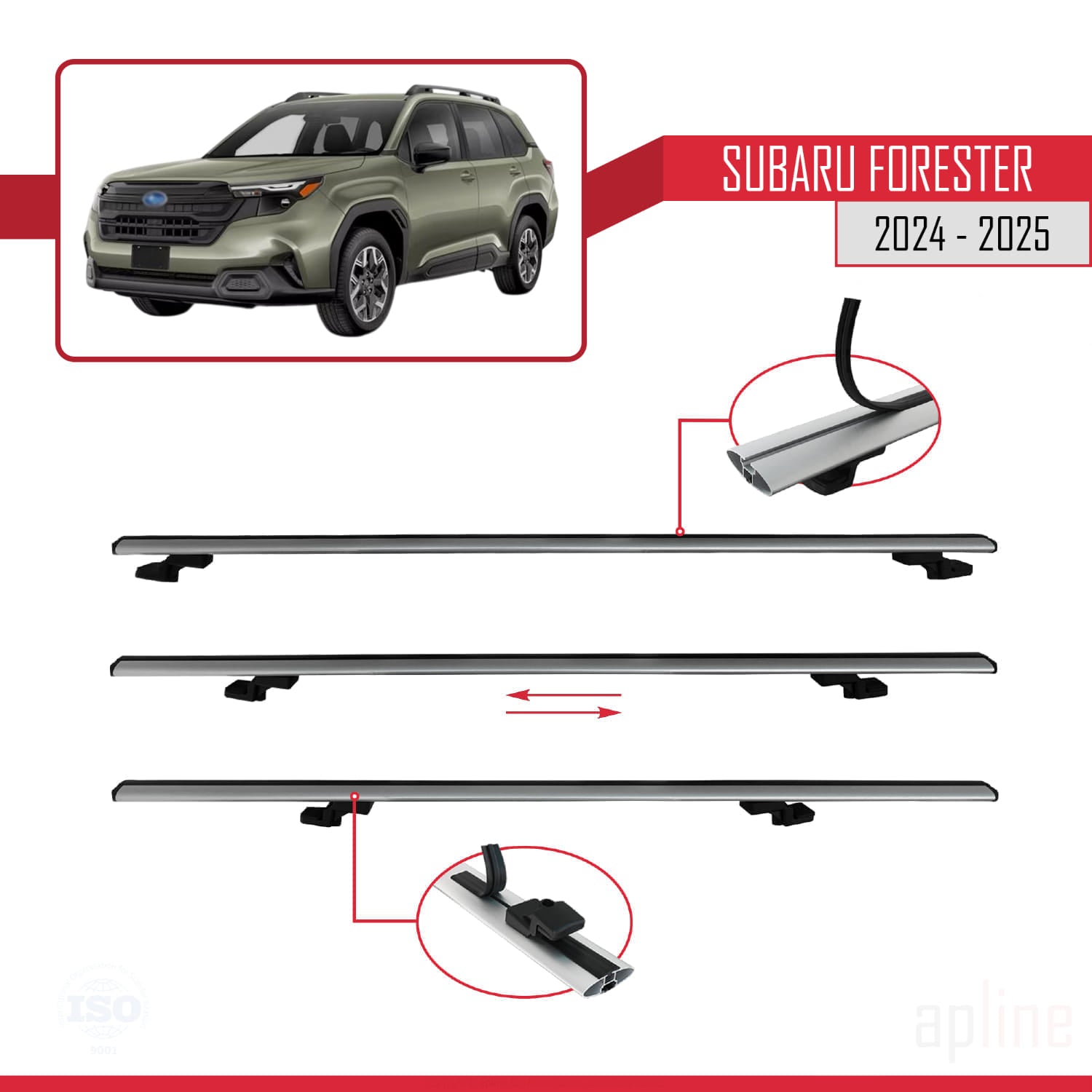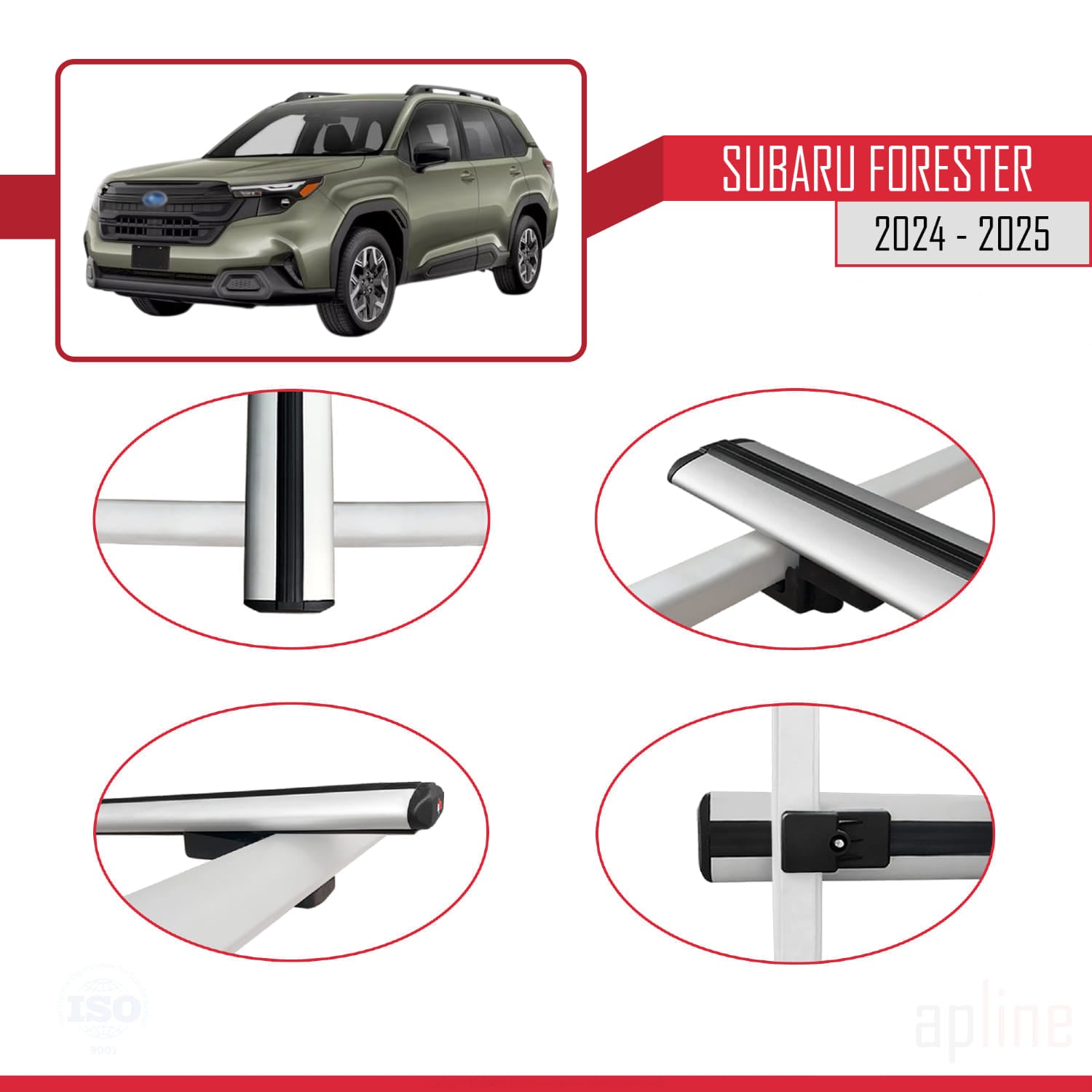 Compatible with Subaru Forester (Raised Roof) 2024-2025 BASIC Model Car Roof Rack Cross Bar Grey Aluminium 2 Bars