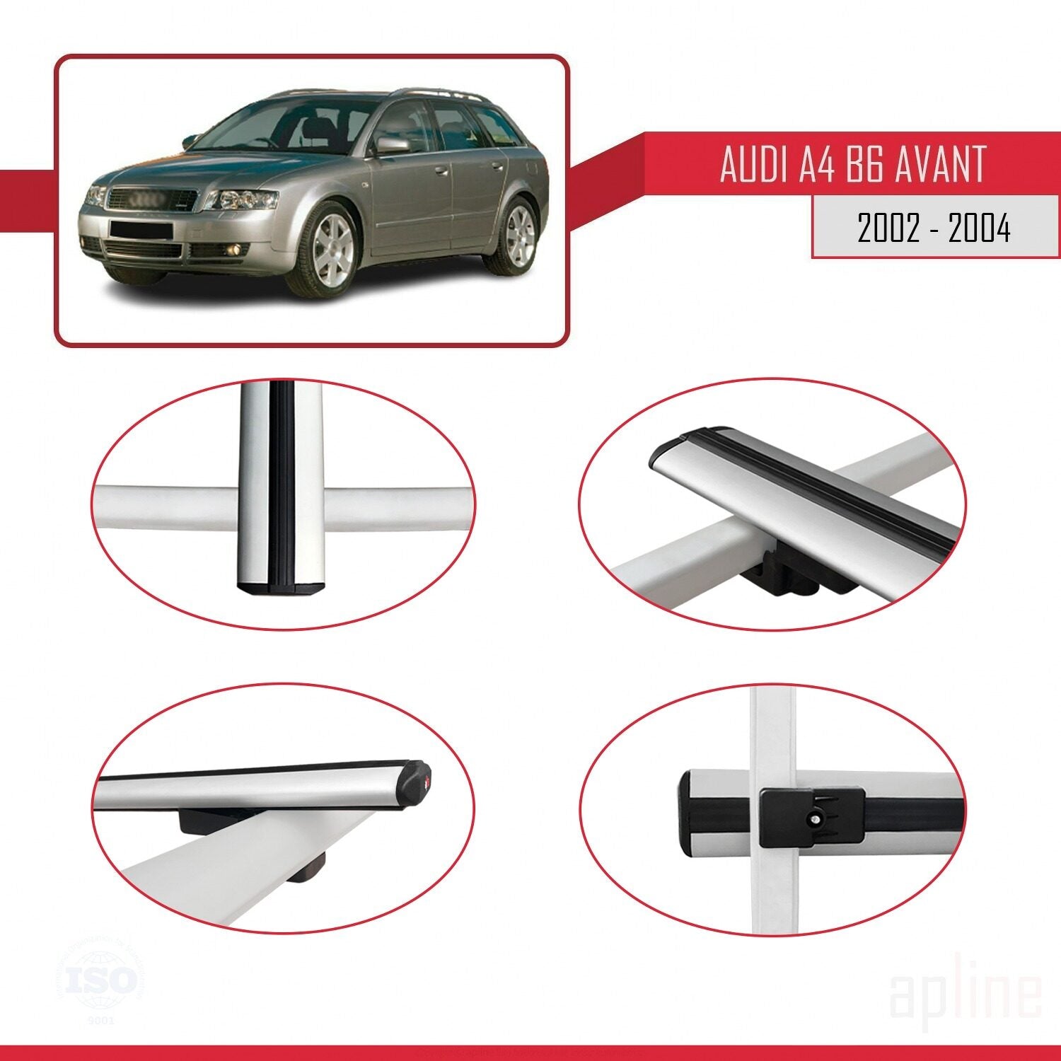 Compatible avec A4 (B6) Avant 2002-2004 BASIC Model Barres de Toit Railing Porte-Bagages de Voiture Gris Aluminium 3 Barres