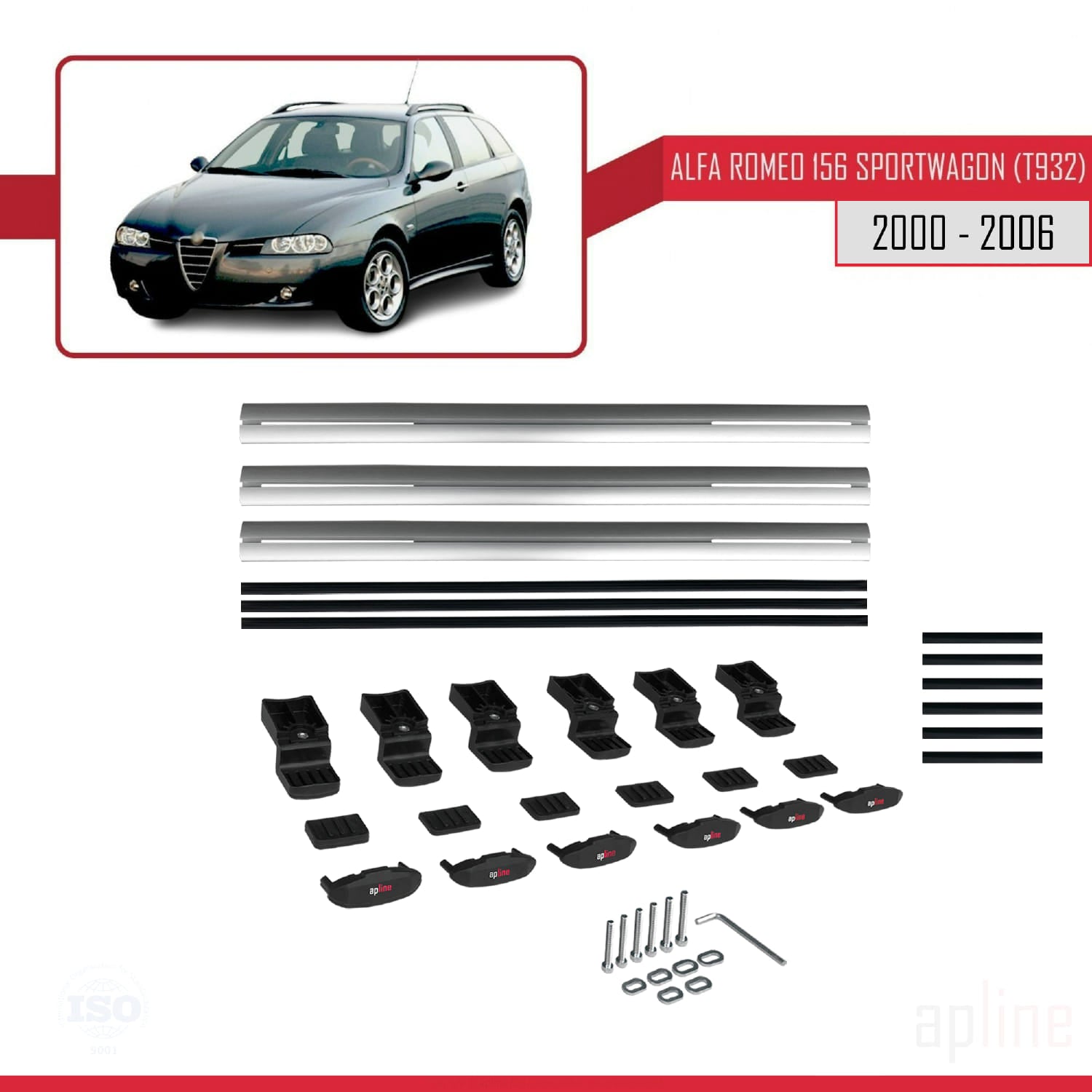 Compatible avec Alfa Romeo 156 (T932) Break 2000-2006 BASIC Model Barres de Toit Railing Porte-Bagages de Voiture Gris Aluminium 3 Barres