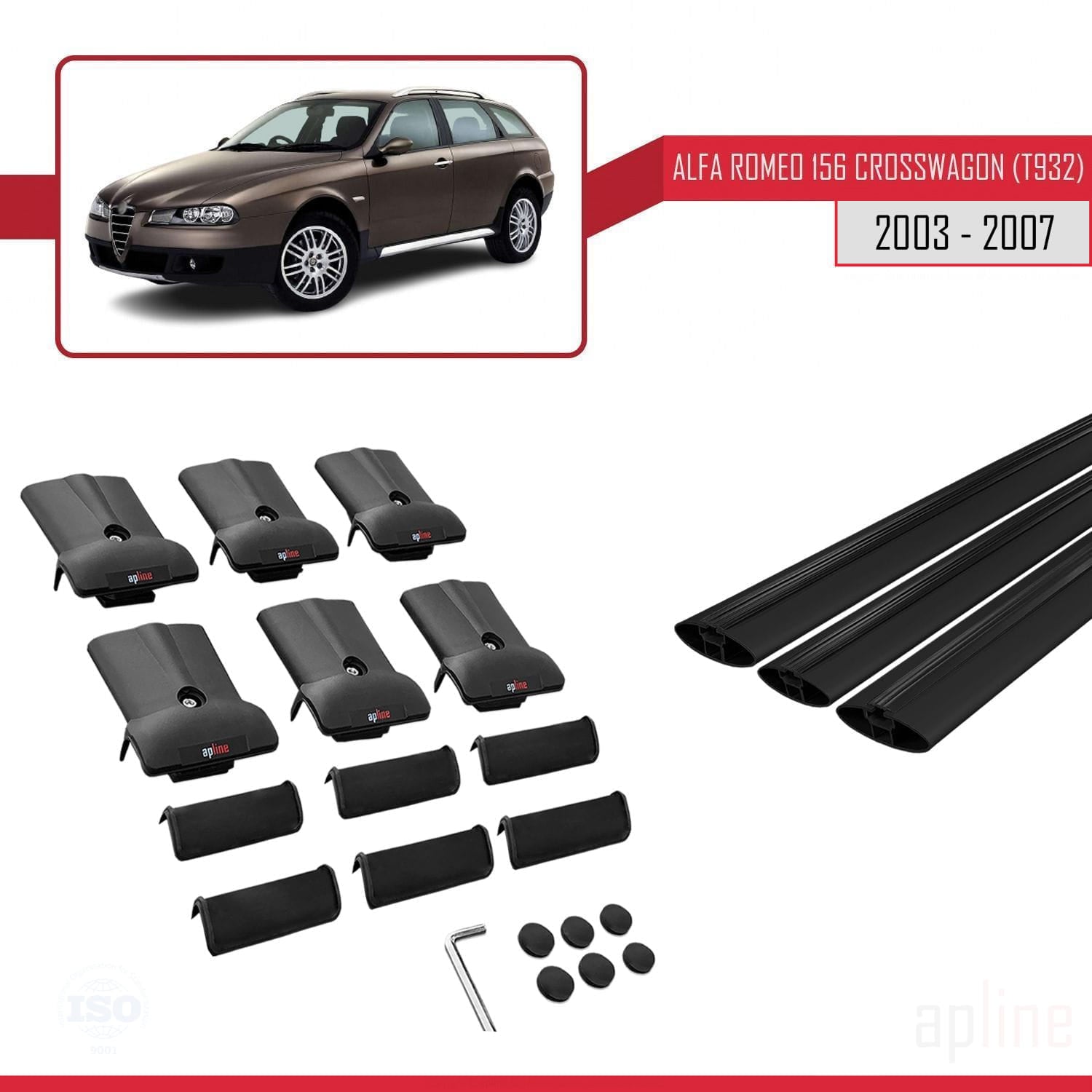 Compatible avec Alfa Romeo 156 (T932) Crosswagon 2003-2007 FLY Model Barres de Toit Railing Porte-Bagages de Voiture Noir Aluminium 3 Barres