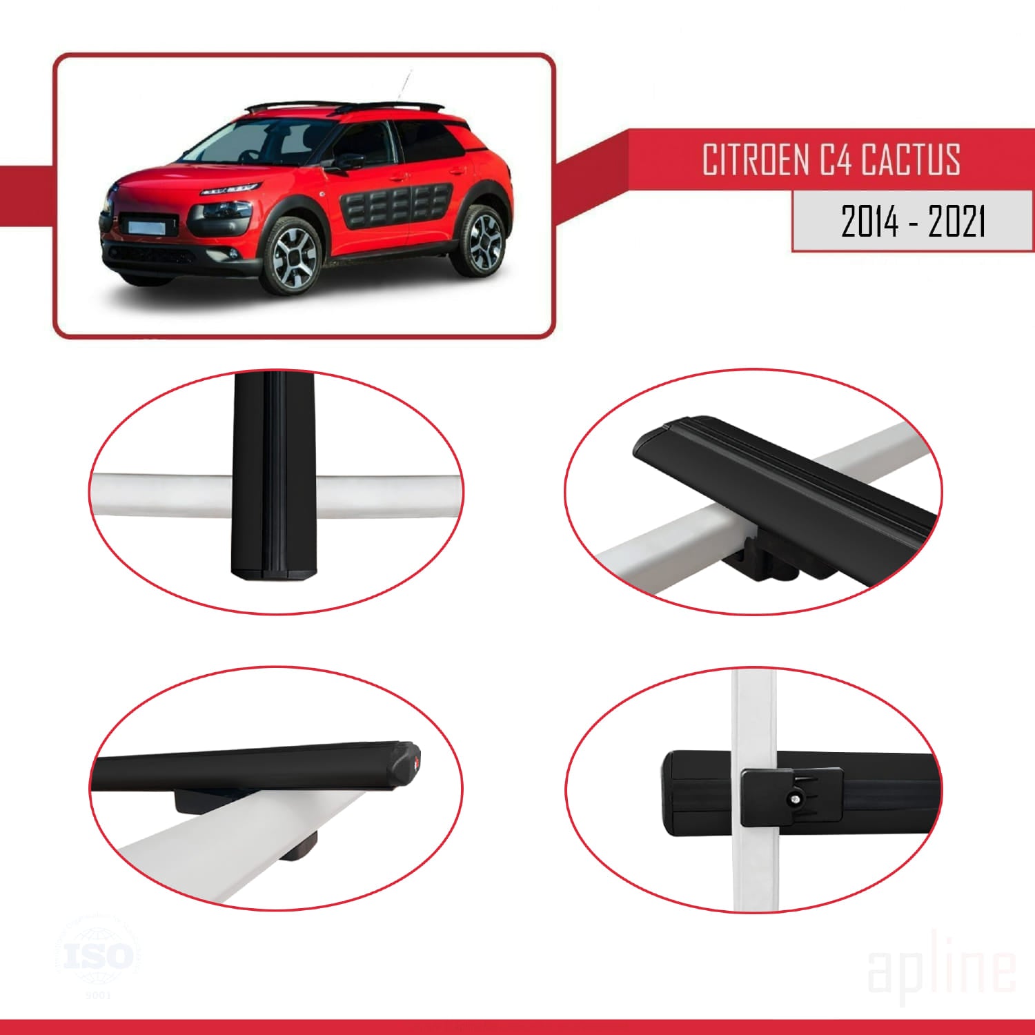Compatible avec Citroen C4 Cactus 2014-2021 BASIC Model Barres de Toit Railing Porte-Bagages de Voiture Noir Aluminium 3 Barres