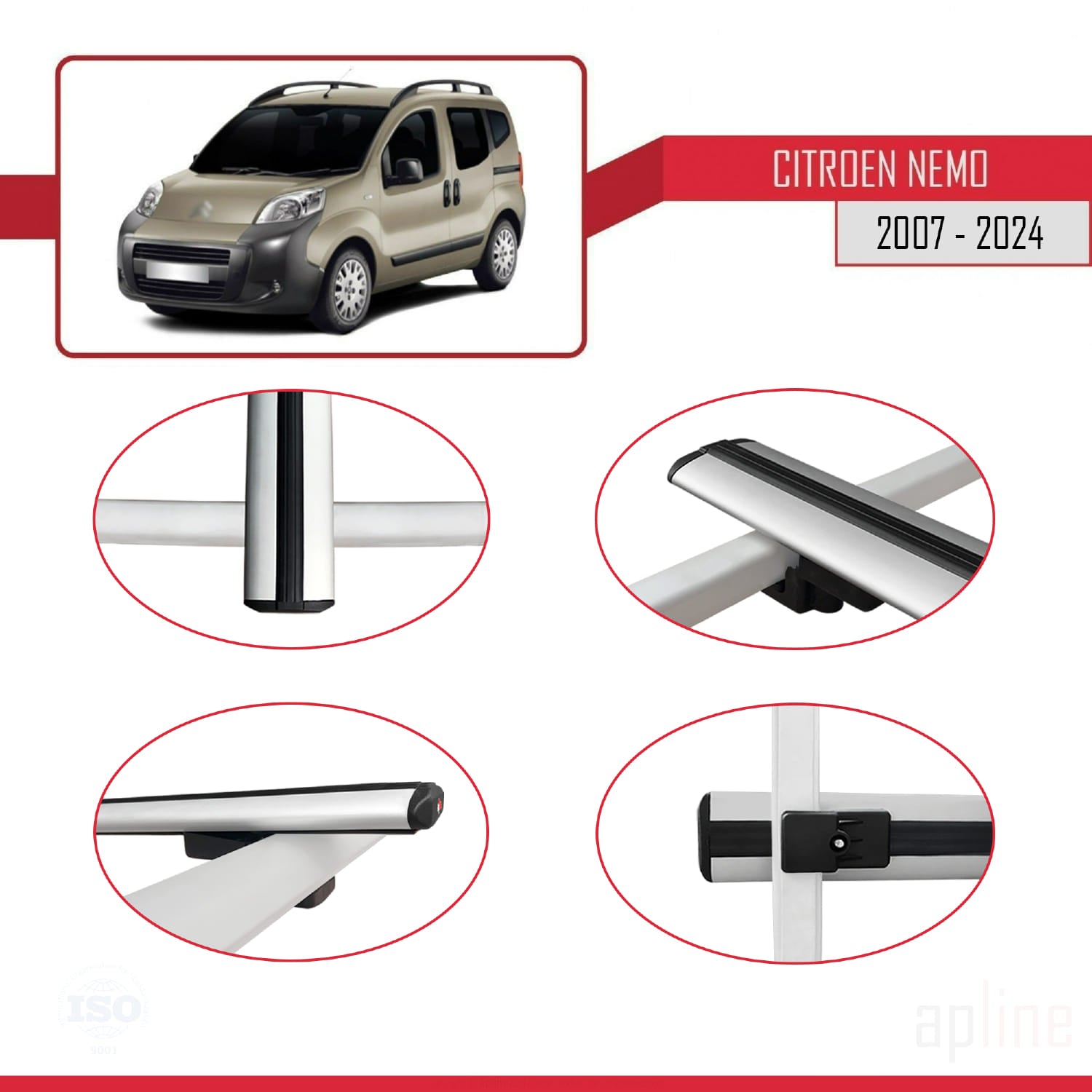 Compatible avec Citroen Nemo 3 (225) 2007-2024 BASIC Model Barres de Toit Railing Porte-Bagages de Voiture Gris Aluminium 2 Barres