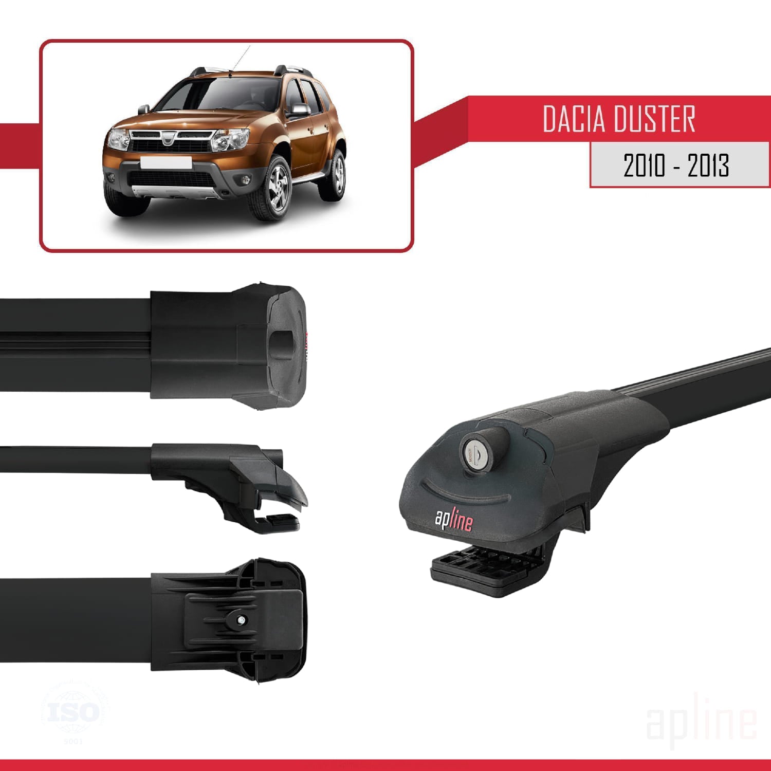 Compatible avec Dacia Duster (HS) Pre-Facelift 2010-2013 ACE-1 Barres de Toit Railing Porte-Bagages de Voiture Noir Aluminium 3 Barres