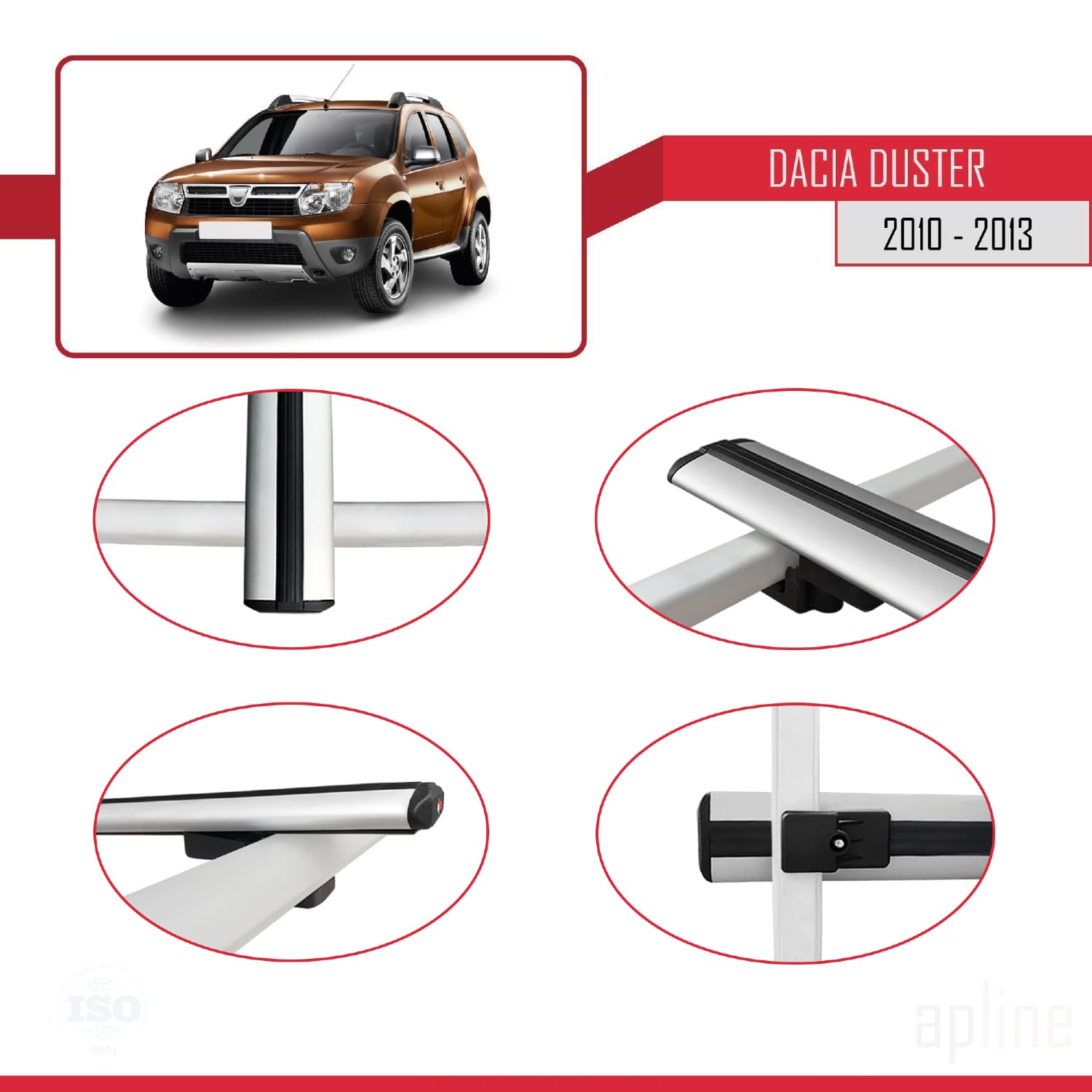 Compatible avec Dacia Duster (HS) Pre-Facelift 2010-2013 BASIC Model Barres de Toit Railing Porte-Bagages de Voiture Gris Aluminium 3 Barres