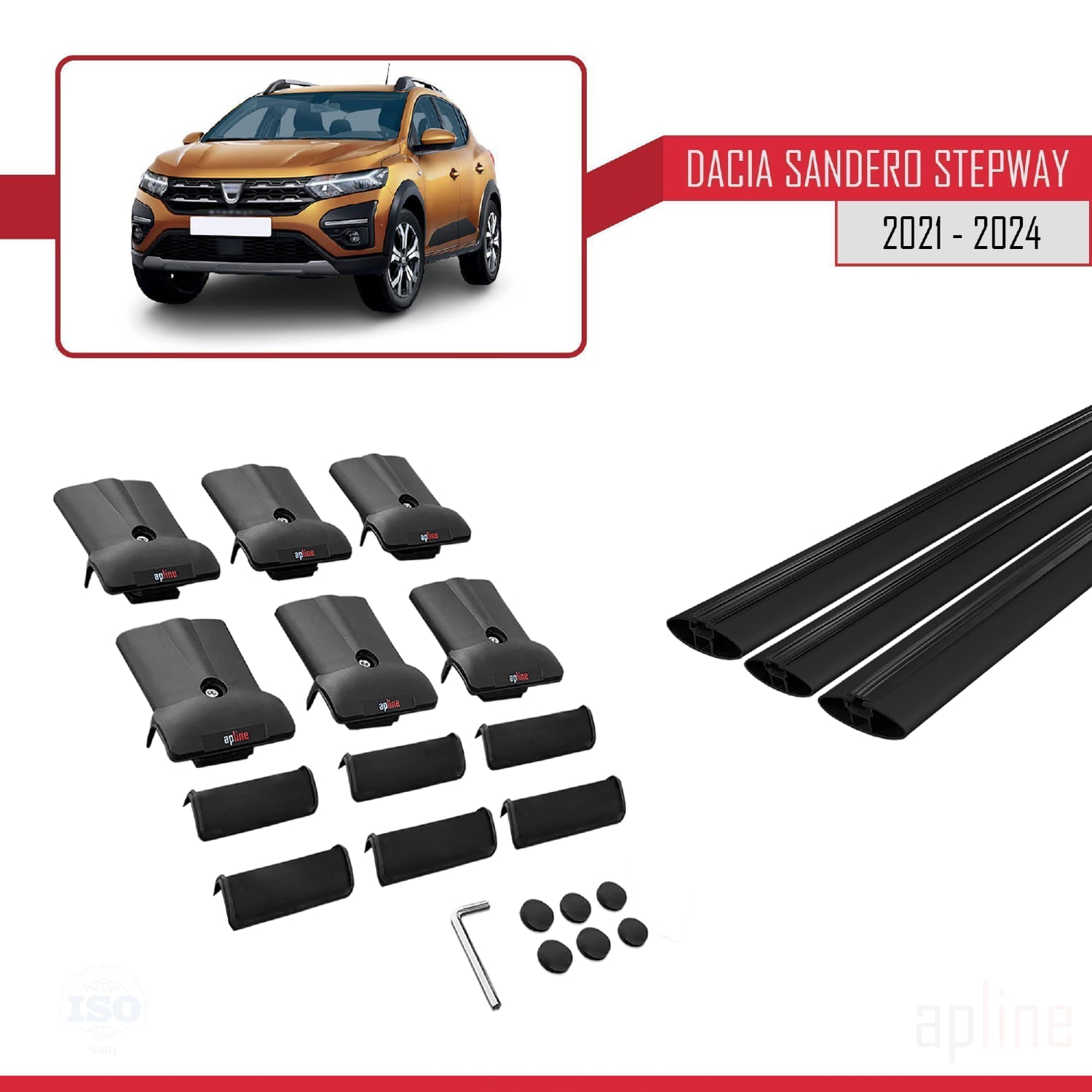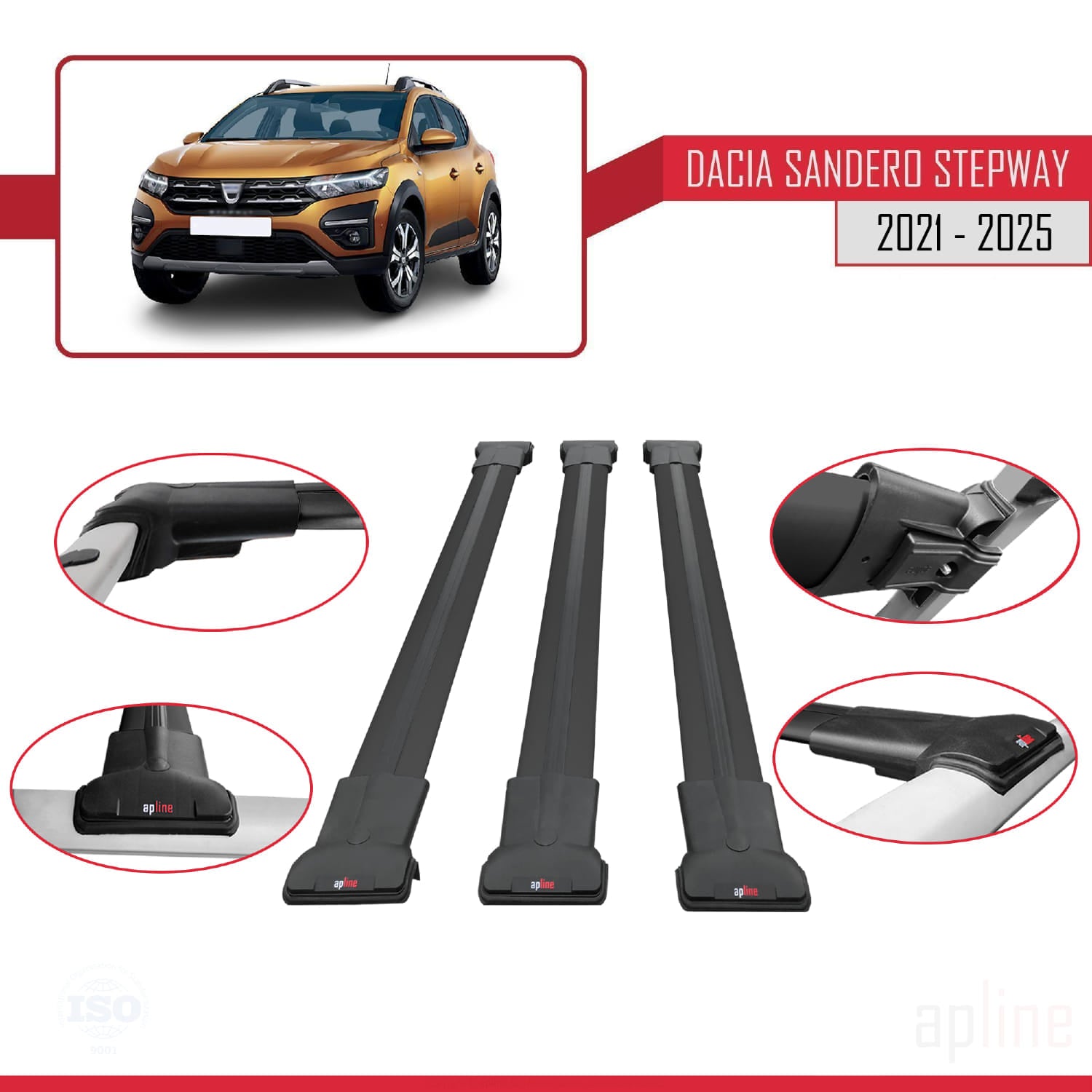 Compatible avec Dacia Sandero Stepway 3 2021-2025 FLY Model Barres de Toit Railing Porte-Bagages de Voiture Noir Aluminium 3 Barres