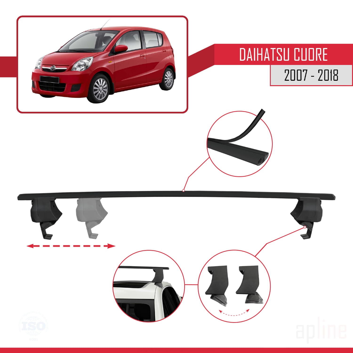 Compatible avec Daihatsu Cuore 2007-2018 ACE-4 Barres de Toit Railing Porte-Bagages de Voiture Noir Aluminium 2 Barres